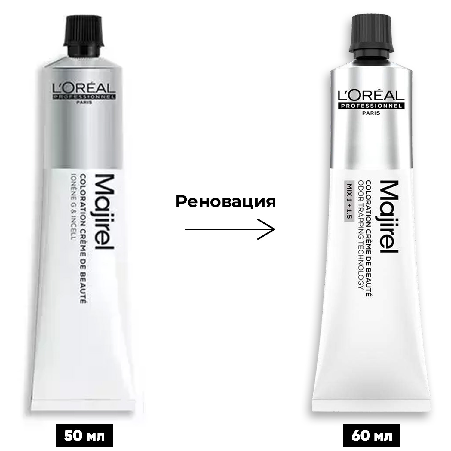 Для приготовления смеси используйте 1 тюбик красителя-крема Majirel 60 мл + 90 мл оксидент-крема с технологией улавливания запахов Odor Trapping Technology.