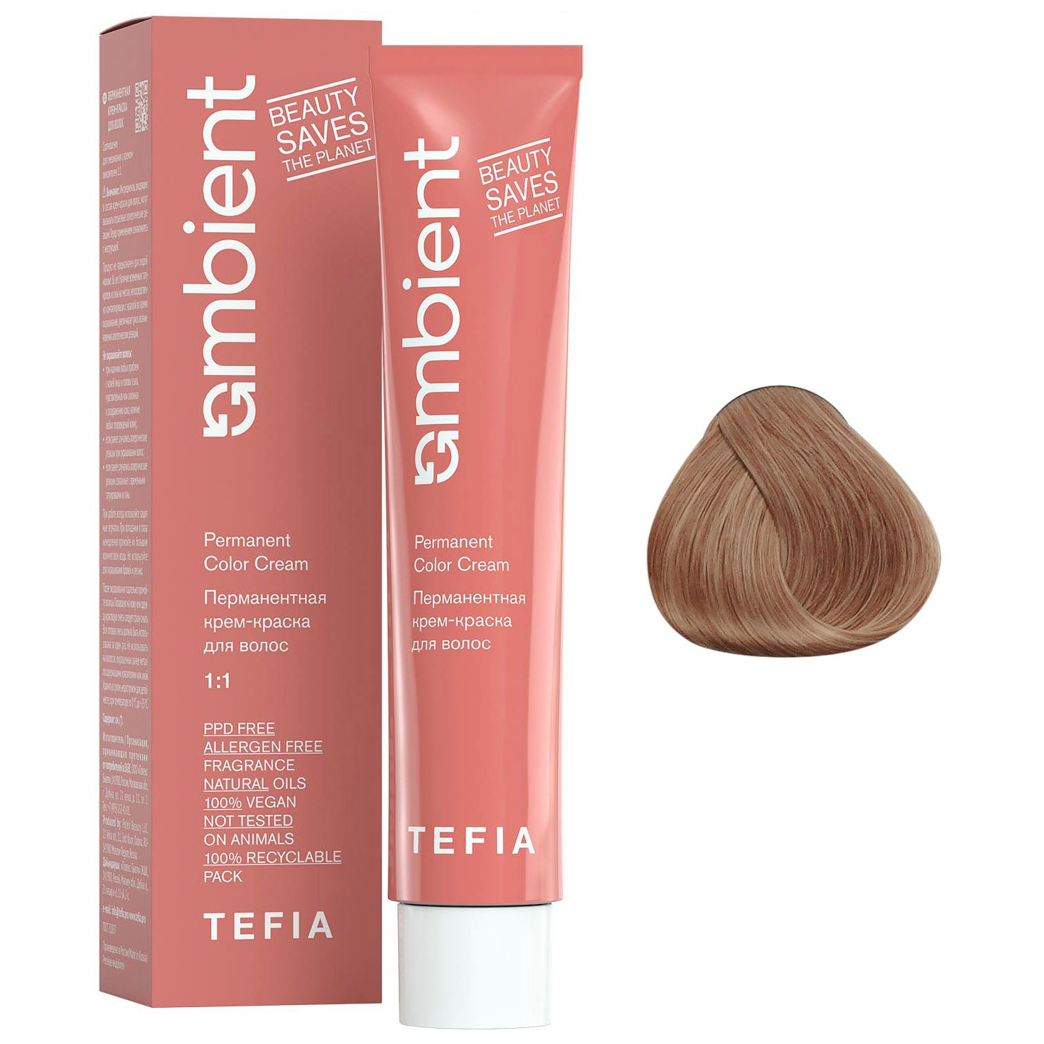 Перманентная крем-краска для волос Ambient, 8.13 Светлый блондин пепельно-золотистый, 60 мл