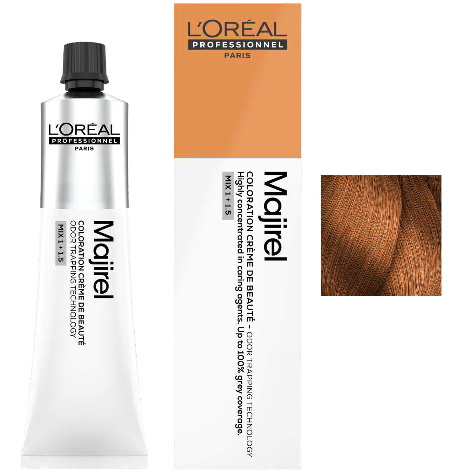 Для приготовления смеси используйте 1 тюбик красителя-крема Majirel 60 мл + 90 мл оксидент-крема с технологией улавливания запахов Odor Trapping Technology.