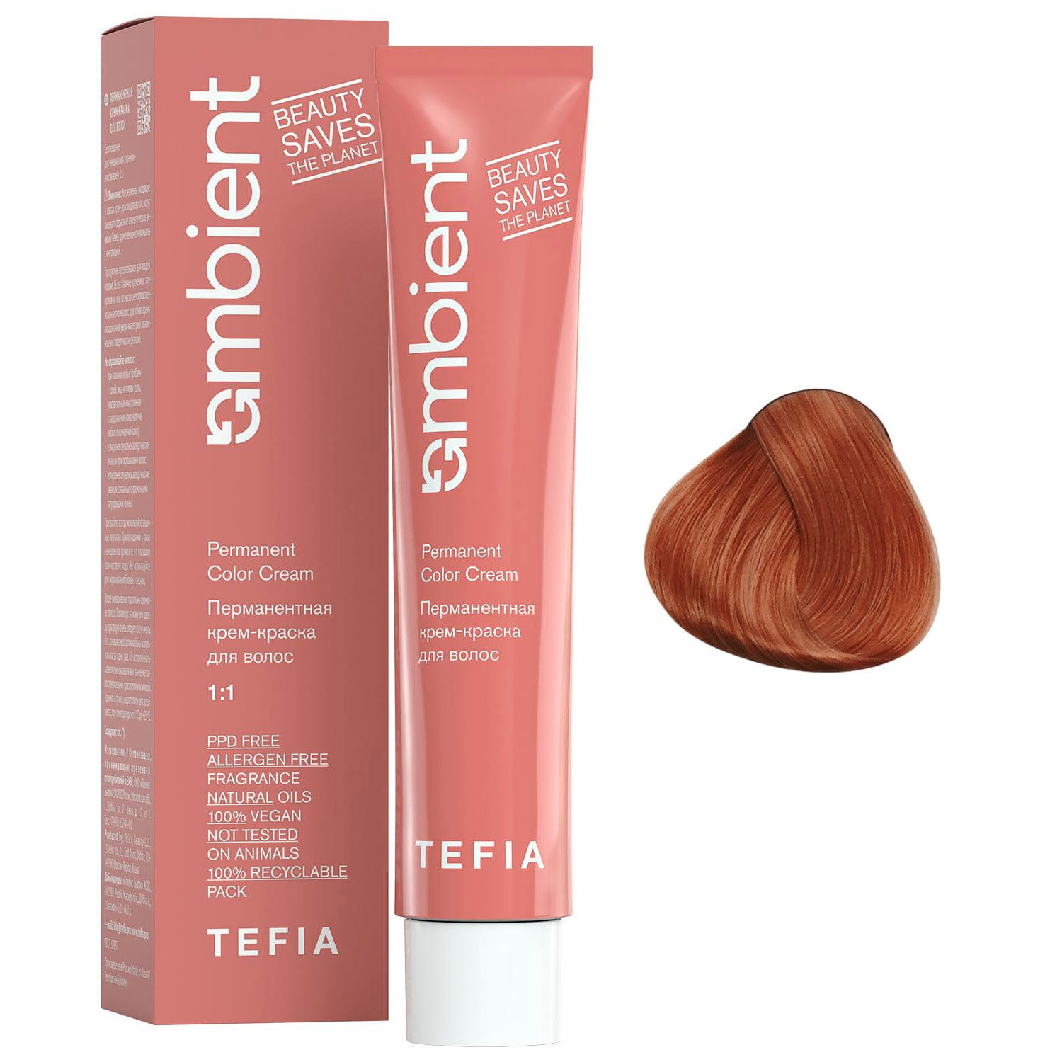 Перманентная крем-краска для волос Ambient, 8.43 Светлый блондин медно-золотистый, 60 мл