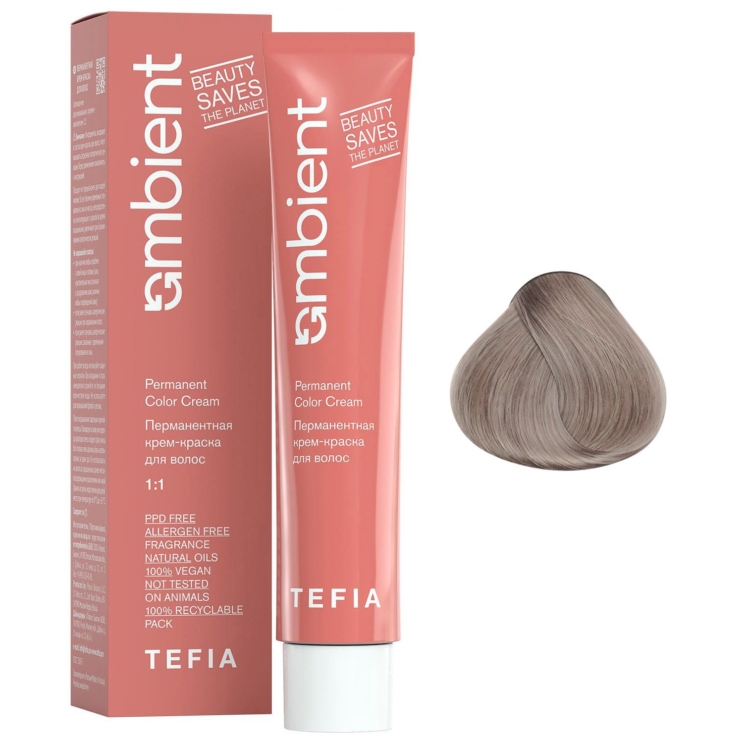 Перманентная крем-краска для волос Ambient, 9.17 Очень светлый блондин пепельно-фиолетовый, 60 мл