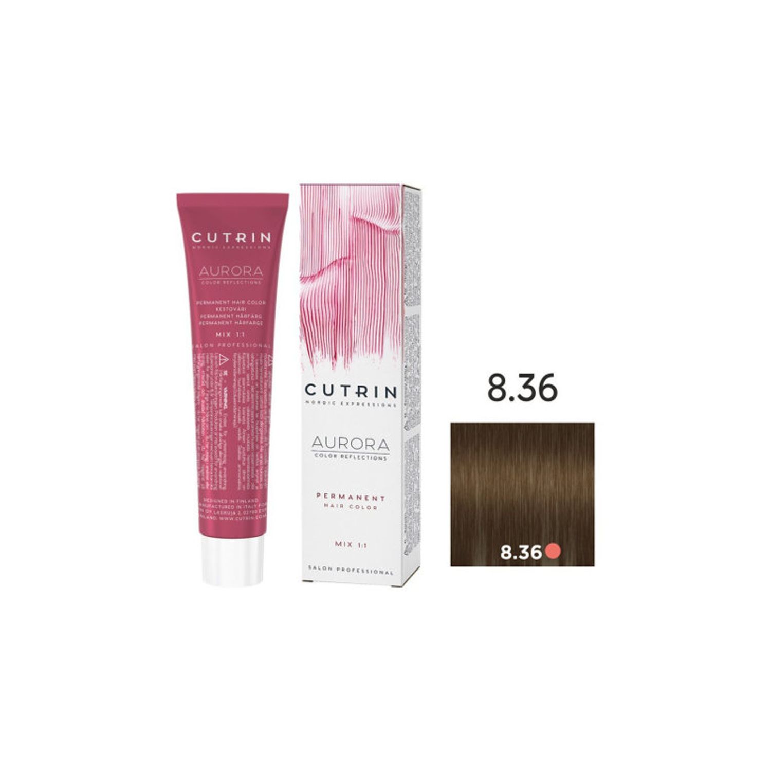 Краситель имеет приятный цветочно-фруктовый запах и удобен в использовании, благодаря пластичной кремообразной консистенции он легко смешивается с окислителем Cutrin Aurora Developer, и при окрашивании седых волос – позволяет добиться равномерного нанесения.