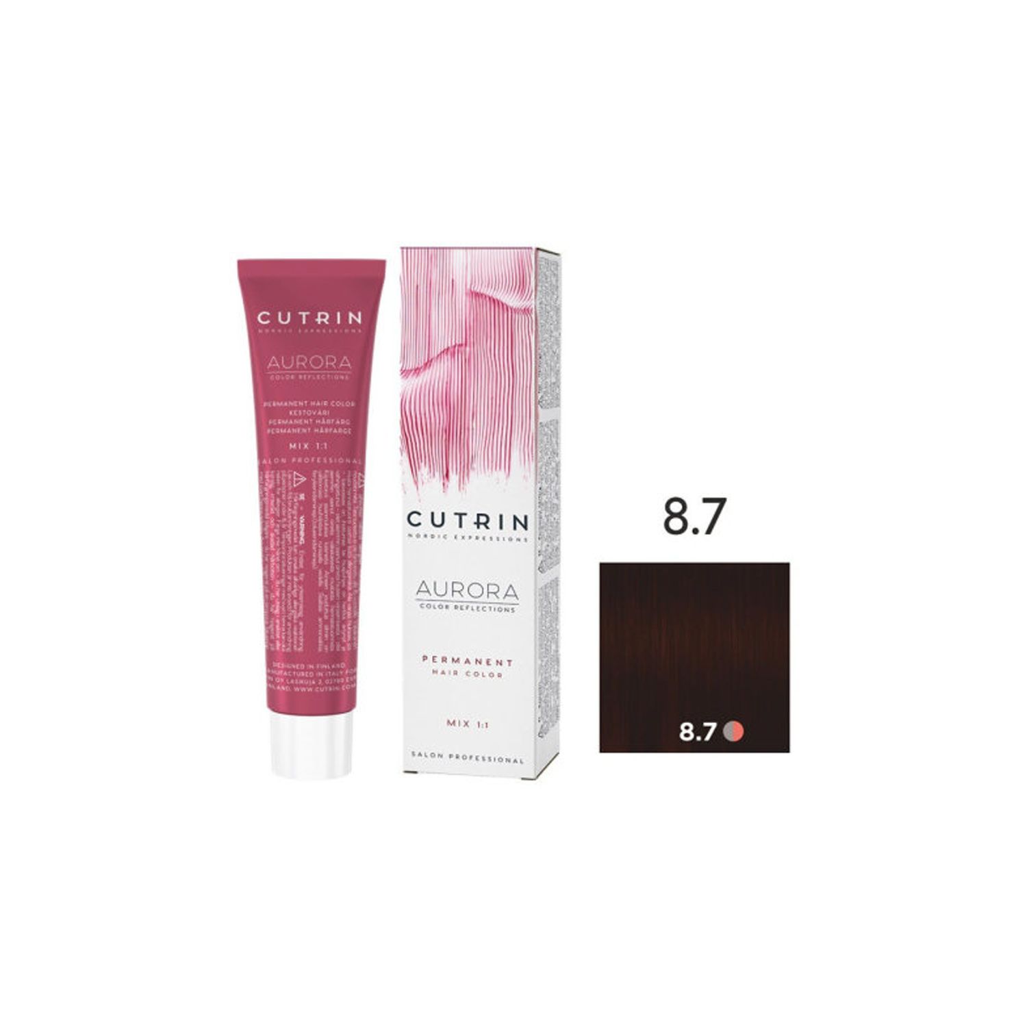Краситель имеет приятный цветочно-фруктовый запах и удобен в использовании, благодаря пластичной кремообразной консистенции он легко смешивается с окислителем Cutrin Aurora Developer, и при окрашивании седых волос – позволяет добиться равномерного нанесения.