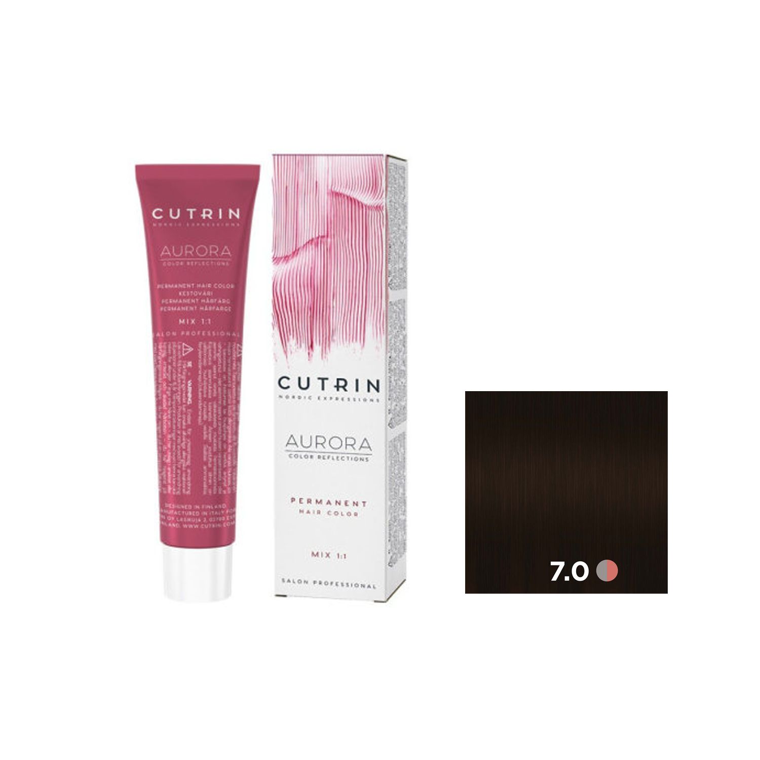 Краситель имеет приятный цветочно-фруктовый запах и удобен в использовании, благодаря пластичной кремообразной консистенции он легко смешивается с окислителем Cutrin Aurora Developer, и при окрашивании седых волос – позволяет добиться равномерного нанесения.
