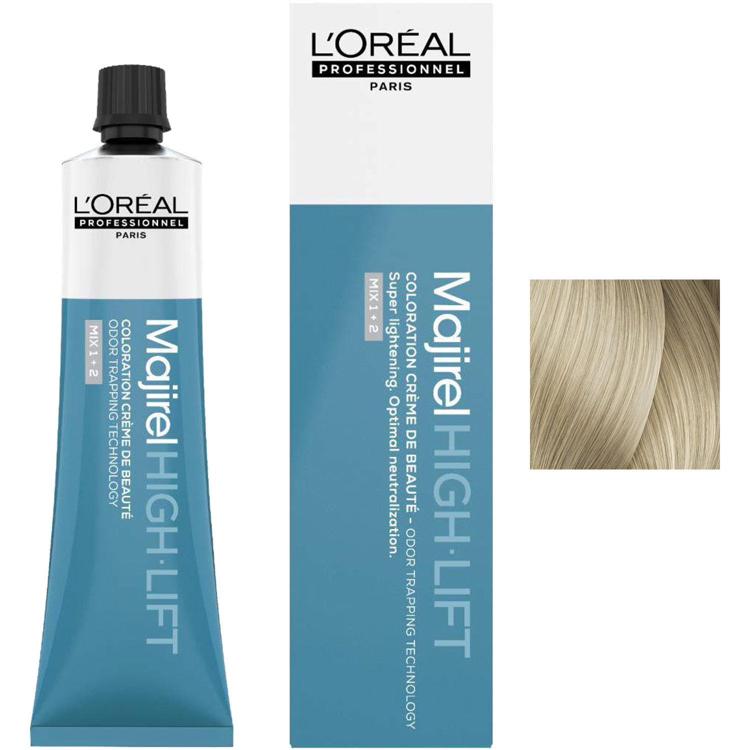 Коллекция оттенков High Lift блонд: пропорции смешивания 1:2, время выдержки 50 минут. Супер-осветляющий краситель для создания холодных оттенков блонд, осветляет до 4 ½ уровней тона и одновременно тонирует. Не требует предварительного обесцвечивания.