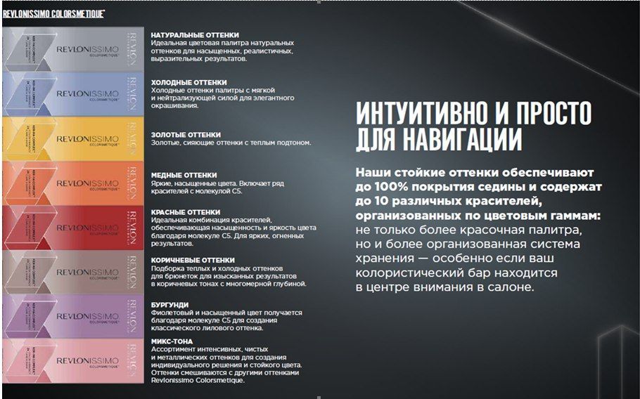 Добро пожаловать в новую расширенную цветовую реальность вместе с обновленной формулой Revlonissimo Colorsmetique! Революционная инновация в профессиональном перманентном окрашивании. С первого нанесения краситель обеспечивает в 2 раза больше ухода, в 2 раза больше блеска, в 2 раза больше яркости цвета - улучшение качества волос окрашивание за окрашиванием.