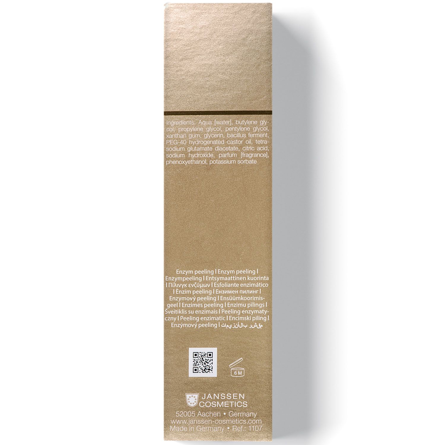 Ферментативный эксфолиант без абразивных частиц - действенное средство для комфортного удаления ороговевшего слоя кожи. Способствует быстрому обновлению, выравниванию микрорельефа кожи и разглаживанию морщин. В составе геля уникальный фермент субтилизин. Он растворяет связи между ороговевшими клетками подобно собственным ферментам кожи, тем самым фактически имитируя естественный метаболический процесс. Эффективно удаляет ороговевшие клетки, улучшает состояние пор, предотвращает образование комедонов и воспалительных элементов, устраняет жирный блеск. Быстро снимает следы усталости кожи и улучшает цвет лица. Уменьшает выраженность нежелательной пигментации.