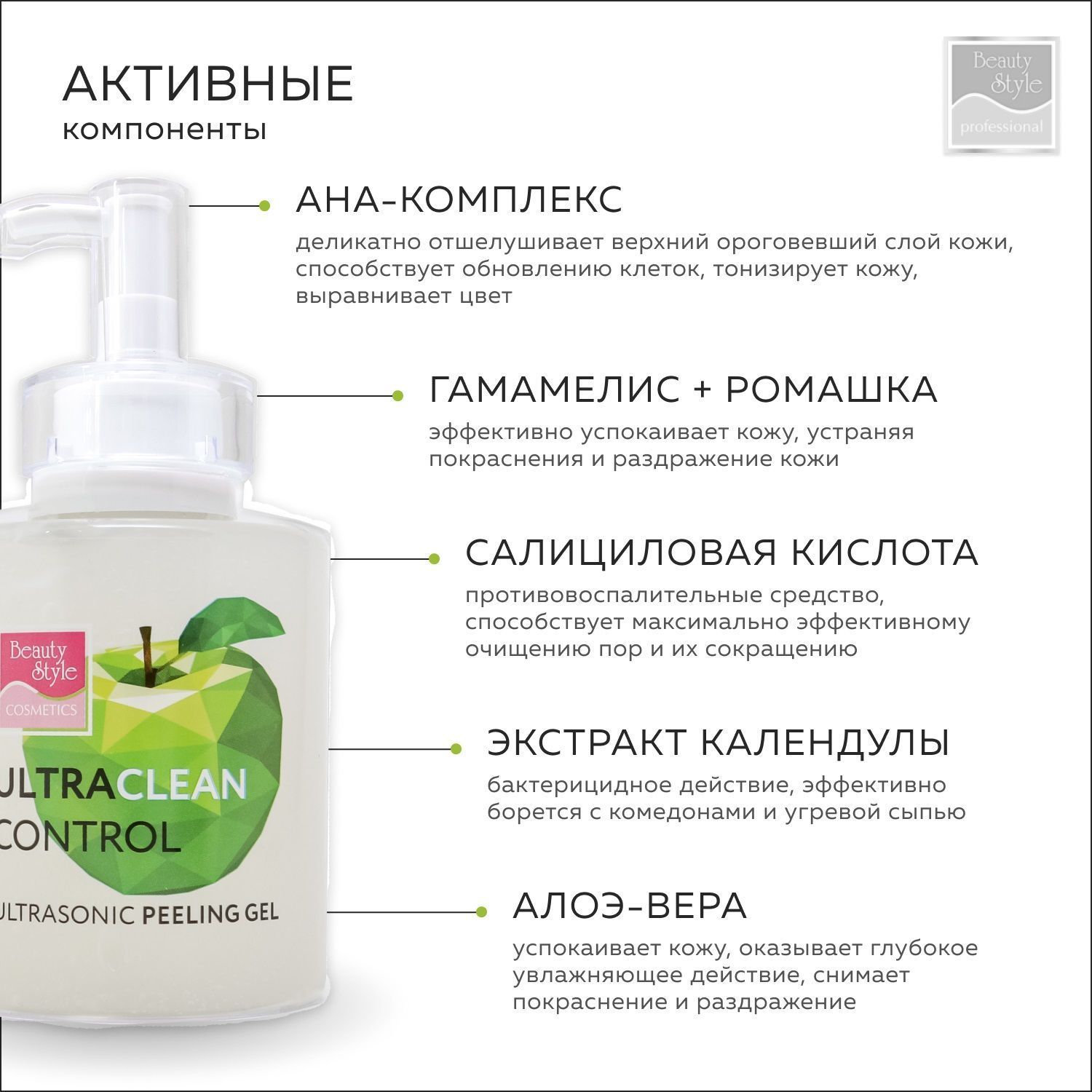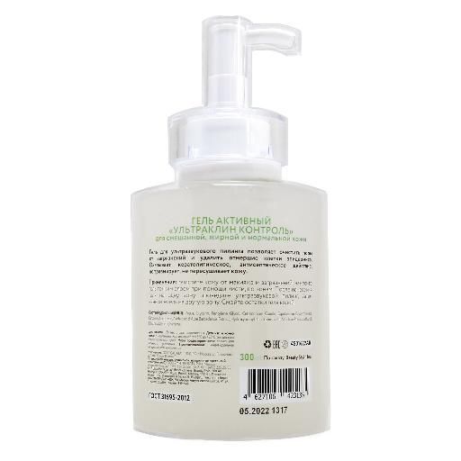 Гель «Ультраклин контроль» разработан специально для проведения ультразвукового пилинга по жирной, смешанной, комбинированной коже, и способствует максимально эффективному и деликатному очищению кожи ультразвуком.