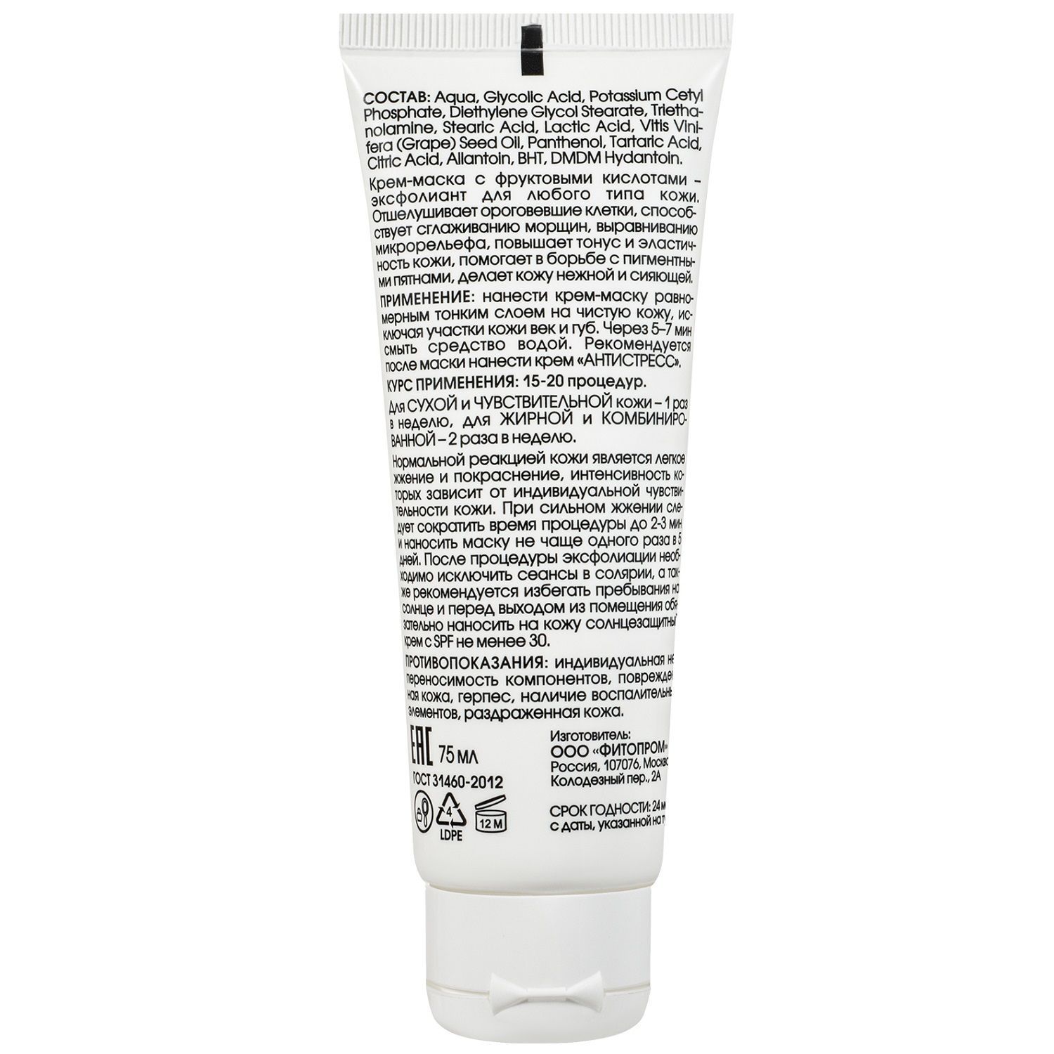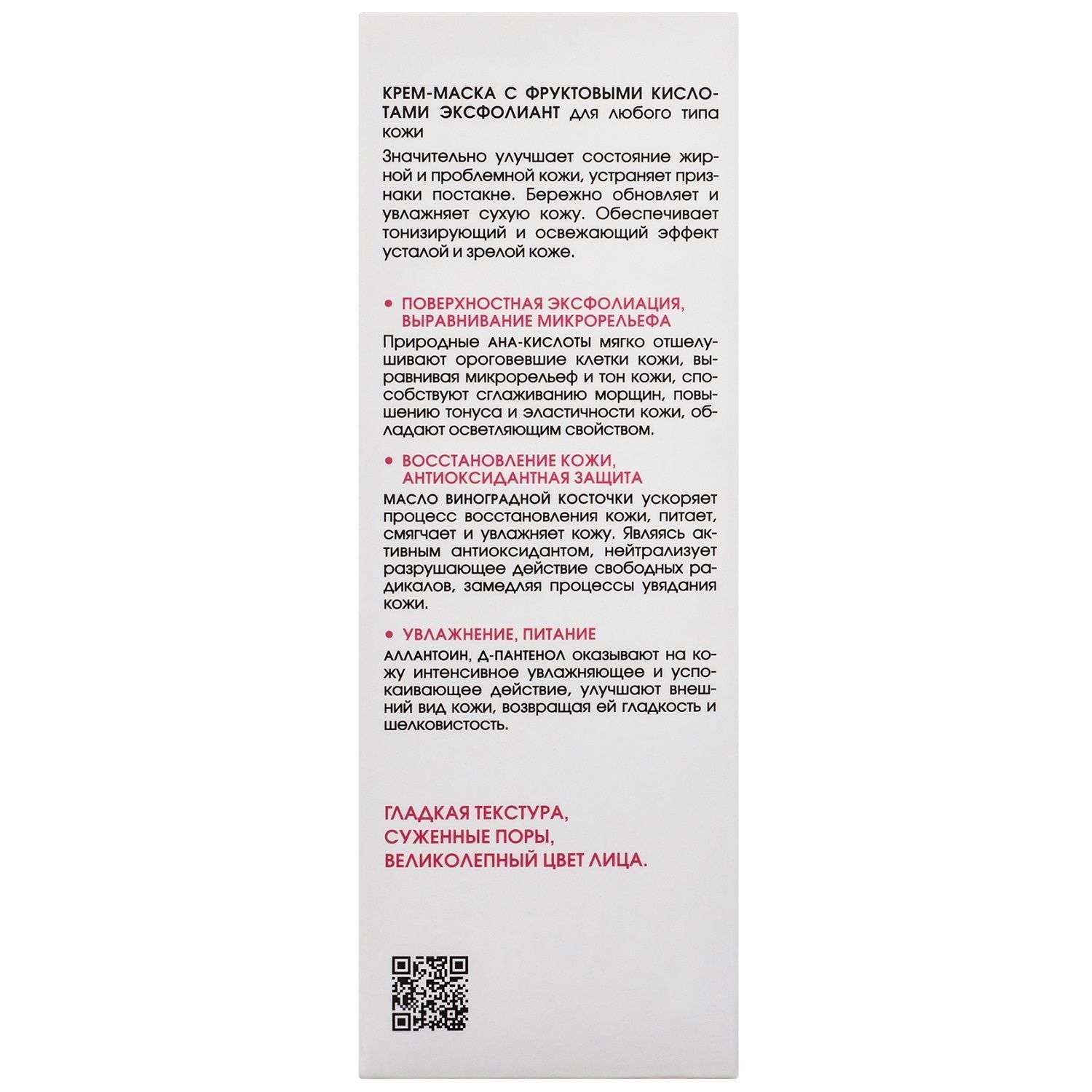 Крем-маска с фруктовыми кислотами – мягкий химический пилинг для любого типа кожи и возраста. Значительно улучшает состояние жирной и проблемной кожи в постакне-период, сглаживает рубцы, оставшиеся после угрей, бережно обновляет и увлажняет сухую кожу, обеспечивает тонизирующий и освежающий эффект вялой, усталой коже, заметно омолаживает возрастную кожу. Сбалансированная концентрация кислот обеспечивает одновременно высокую эффективность средства и безопасность для кожи, позволяя осуществлять процедуру эксфолиации в домашних условиях.
