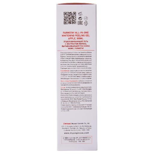 Пилинг-гель для лица на основе экстракта яблока с отбеливающим эффектом. Пилинг обладает скатывающимся эффектом (очищает кожу лица, не царапая её), а также прекрасно очищает кожу от мертвых клеток, борется с пигментацией, нормализует выделение кожного жира, очищает поры, борется с черными точками. Насыщен гликолевой и фруктовой кислотами, а также экстрактом алоэ вера. Алоэ хорошо успокаивает раздражения, а экстракт яблока мягко отшелушивает, увлажняет, успокаивает, обновляет кожу и делает её свежей и мягкой. Подходит для любого типа кожи.
