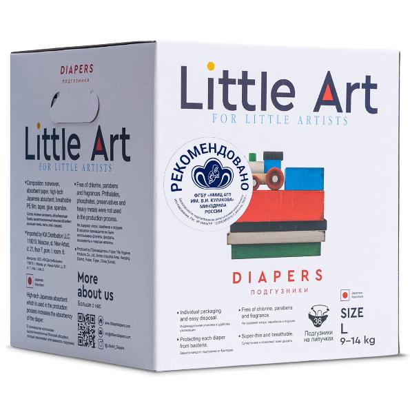 Little Art - первый бренд в России, чьи подгузники прошли полноценное научное исследование и наблюдение в ведущем федеральном центре акушерства, гинекологии и перинатологии им. В.И. Кулакова Минздрава России. Проверка проводилась в условиях неонатологического стационара и амбулаторно. Высокий стандарт качества и полной безопасности продукции Little Art подтвержден результатами - у новорожденных разного пола, включая недоношенных с низкой массой тела, детей на искусственном вскармливании в 100% случаев не обнаружено признаков пеленочного дерматита после использования подгузников и трусиков Little Art. Продукция компании получила рекомендацию к использованию в том числе в лечебных учреждениях Российской Федерации.