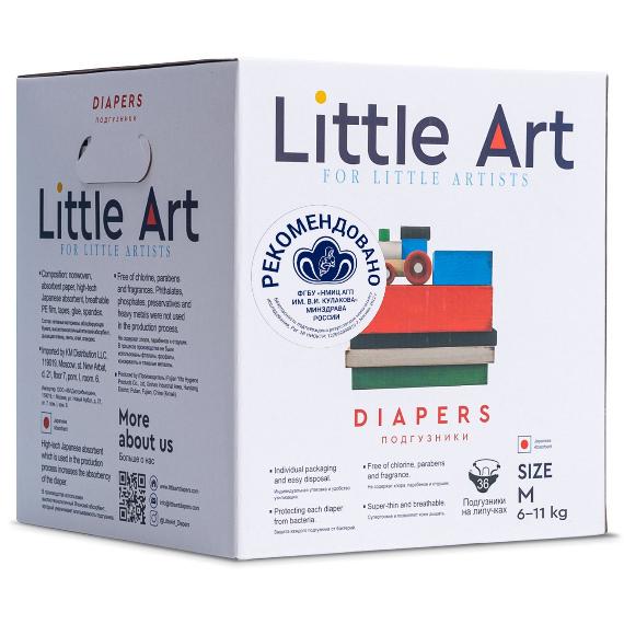Little Art - первый бренд в России, чьи подгузники прошли полноценное научное исследование и наблюдение в ведущем федеральном центре акушерства, гинекологии и перинатологии им. В.И. Кулакова Минздрава России. Проверка проводилась в условиях неонатологического стационара и амбулаторно. Высокий стандарт качества и полной безопасности продукции Little Art подтвержден результатами - у новорожденных разного пола, включая недоношенных с низкой массой тела, детей на искусственном вскармливании в 100% случаев не обнаружено признаков пеленочного дерматита после использования подгузников и трусиков Little Art. Продукция компании получила рекомендацию к использованию в том числе в лечебных учреждениях Российской Федерации.