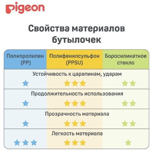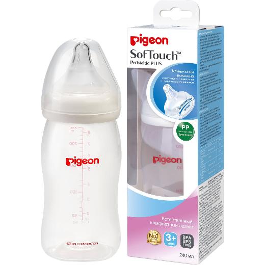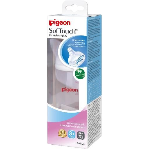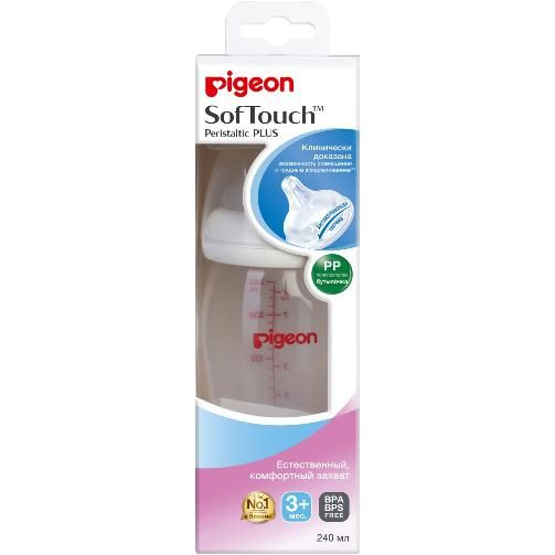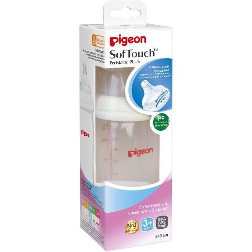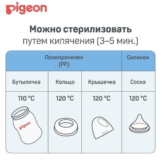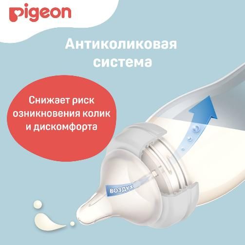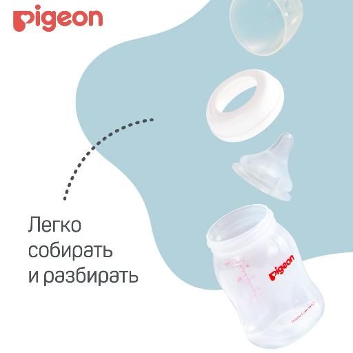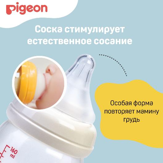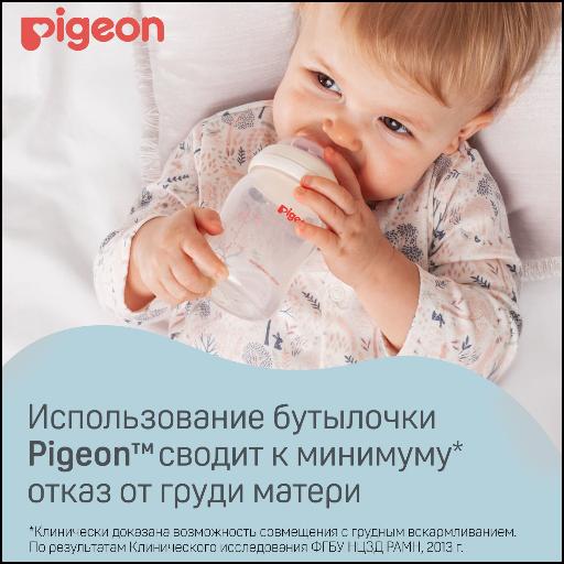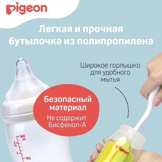 Бутылочка для кормления с физиологической соской разработана специально для грудных младенцев на основе научно-практических исследований лаборатории Pigeon. Создана в поддержку грудного вскармливания. Не вызывает путаницы сосков. Уникальная конструкция соски позволяет воспроизводить естественные механизмы сосания груди матери. Прошла клинические исследования (НЦЗД РАМН, 2013г.). Соска изготовлена из очень мягкого, эластичного и плотного силикона, уникальная конструкции соски стимулирует естественное сосание. Матовая текстурированная поверхность способствует надежному захвату соски. Размер отверстия соски соответствует этапу развития ребенка, в комплекте с соской (размер M, 3-6 мес.). Запатентованная вентиляционная система способствует равномерному поступлению молока. Снижает риск возникновения колик. Эргономичная форма бутылочки, широкое горлышко позволяет легко промыть бутылочку. Бутылочка изготовлена из полипропилена (PP), легкая и прочная. Не содержит Бисфенол-А. Запасные соски можно приобрести отдельно. Подходит к молокоотсосам Pigeon.
