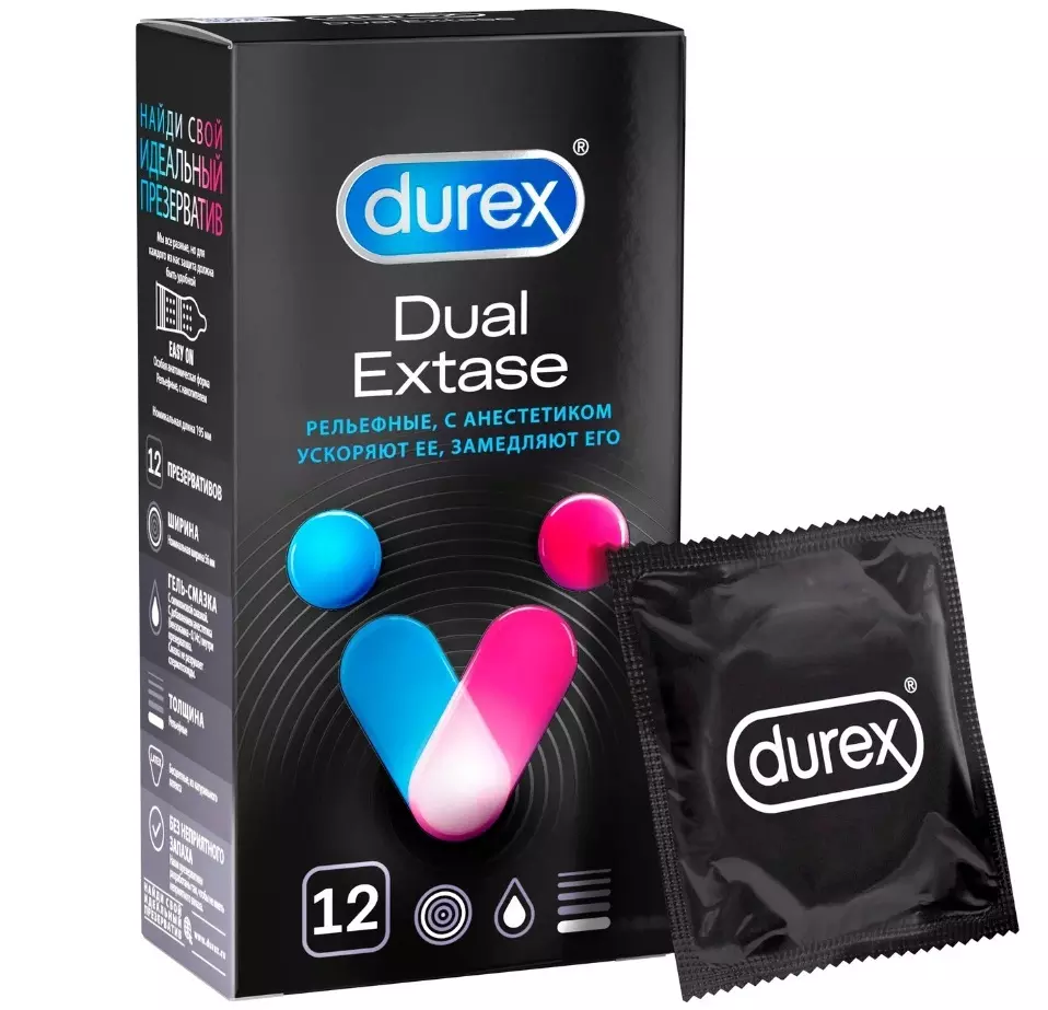 Эти презервативы созданы для того, чтобы ускорить её и замедлить его. Внутри презерватива анестетик, помогающий предотвратить преждевременную эякуляцию и продлить половой акт. Снаружи презерватива - ребра и пупырышки, помогающие усилить стимуляцию и ускорить наступление оргазма женщины.