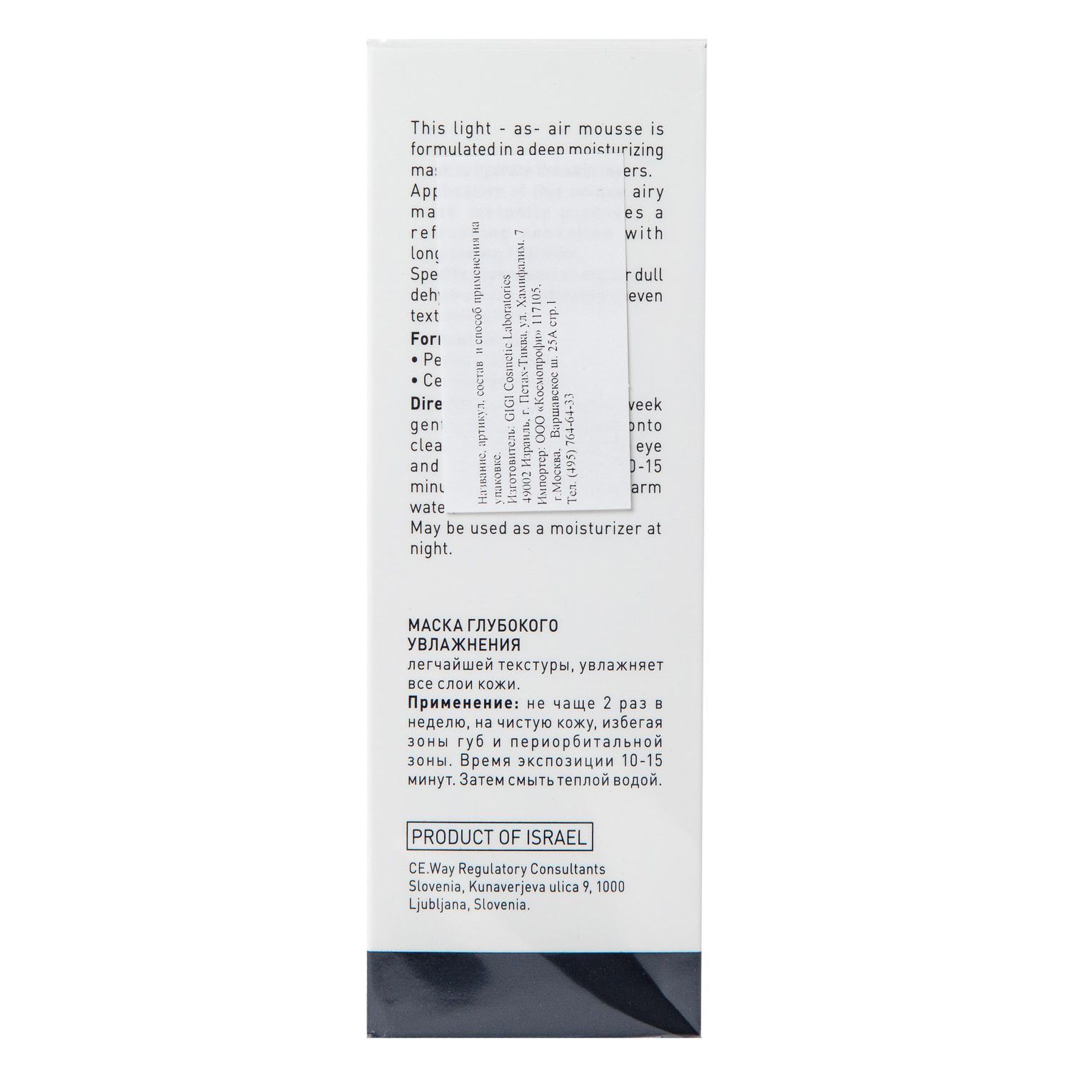 Маска с воздушной текстурой для немедленного и глубокого увлажнения в домашних условиях. Формула оказывает глубокое воздействие на повышение способности к регенерации и омоложению, улучшение текстуры, эластичности, упругости и тонуса кожи. После процедуры кожа становится расслабленной, свежей, гладкой, насыщенной влагой, упругой и подтянутой.