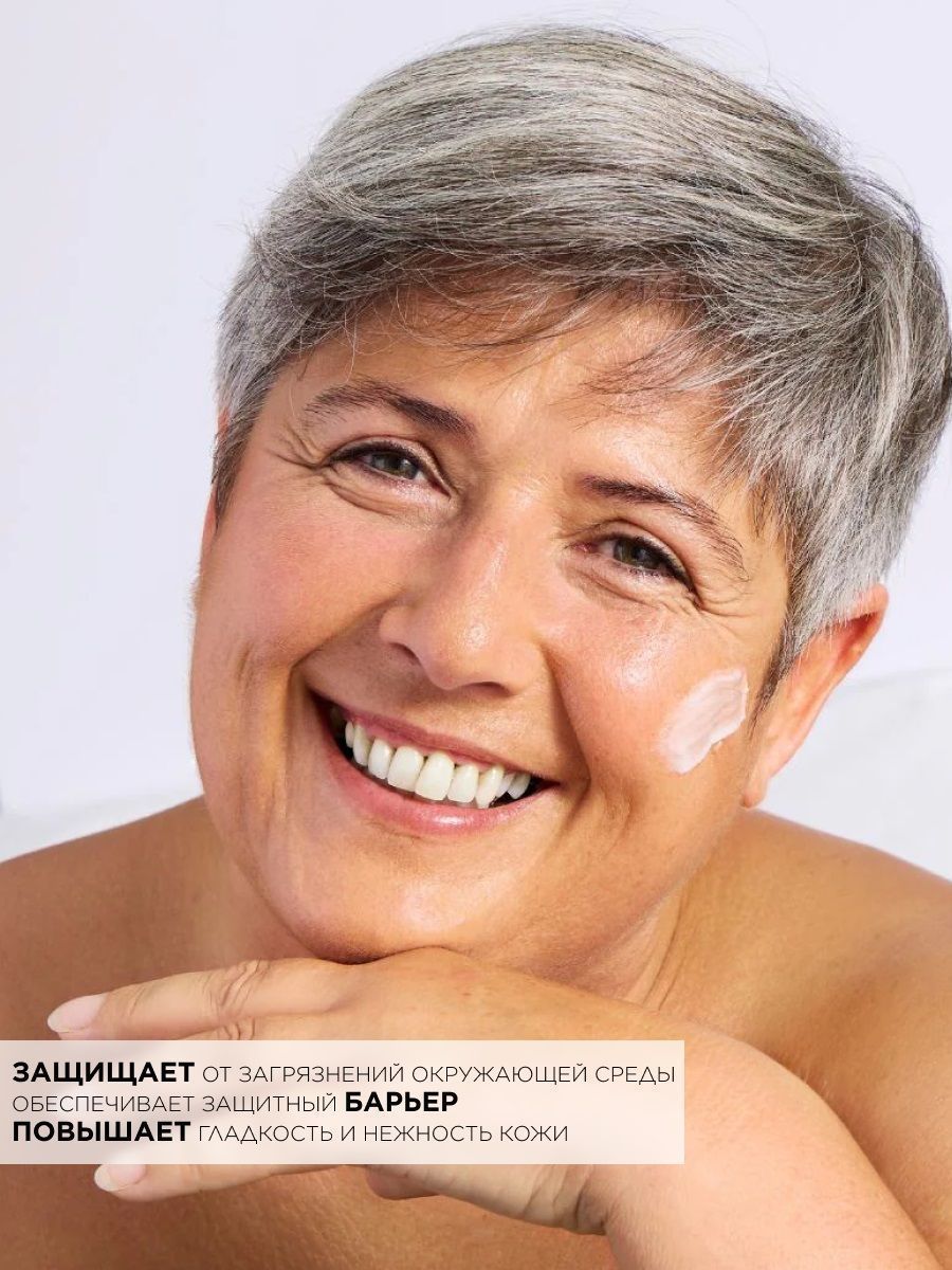 Флюид с легкой текстурой корректирует морщины, возвращает коже упругость, выравнивает цвет лица. Кожа наполнена энергией и сиянием, защищена от загрязнений окружающей среды и голубого света экранов, контур лица очерчен, текстура кожи улучшена.