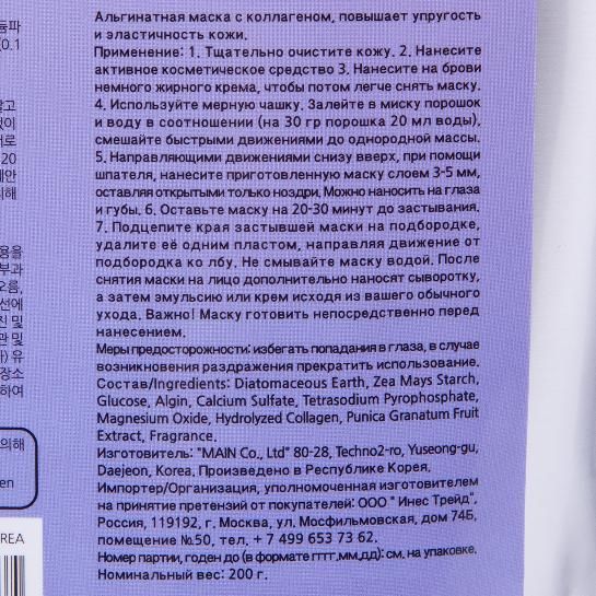 Альгинатная маска с повышенным содержанием коллагена создана для поддержания молодости и упругости кожи. Альгинатная маска позволяет в домашних условиях получить результат практически идентичный салонной процедуре. Альгиновая кислота – вещество, добываемое из породы водорослей, имеет вязкую консистенцию. Контактируя с кожей, альгинат начинает действовать мгновенно. Воспаления становятся менее заметными, ткани наполняются влагой, угревая сыпь подсушивается, а лицо приобретает здоровый и однородный цвет. Коллаген – это эффективный лифтинг и борьба с возрастными изменениями, глубокое увлажнение кожи и обновление клеток. Отличительной особенностью альгинатных масок является то, что они не имеют противопоказаний и могут использоваться на любом типе кожи, демонстрируя одинаково хороший результат применения. Сухую кожу альгинат увлажняет, у жирной – балансирует выделение себума, уменьшает и подсушивает воспаления, а зрелую кожу маска зрительно подтягивает и разглаживает. Альгинатная маска всего за два применения (именно на столько хватает упаковки объемом 18 мл) значительно улучшит состояние кожи: увлажнит и восстановит, разгладит мелкие морщины, визуально подтянет овал лица.