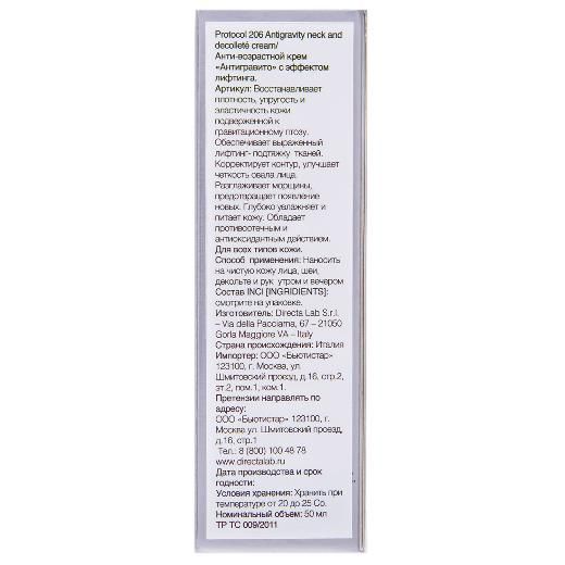 Запатентованный продукт — антивозрастной крем «Антигравито» обеспечивает выраженный лифтинг – подтяжку тканей; восстанавливает плотность, упругость и эластичность кожи; корректирует контур, улучшает чёткость овала лица; устраняет поверхностные морщины, снижает выраженность глубоких и предотвращает появление новых; оказывает противоотёчное действие; полномасштабно запускает выработку коллагена, эластина и собственной гиалуроновой кислоты; улучшает структуру кожи и восстанавливает её; обладает мощным антиоксидантным действием; глубоко увлажняет и питает кожу; выравнивает и улучшает тон. Подходит для людей всех возрастов и для любого типа кожи. Продукт безопасен для беременных и женщин в период лактации. Не вызывает появление комедонов. Гипоаллергенен. Без ПЭГ и парабенов.