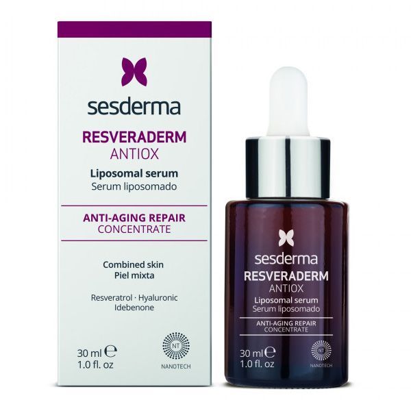 Антиоксидантная липосомальная сыворотка, в состав которой входит резвератрол, липосомированная гиалуроновая кислота и стволовые клетки синеголовника приморского, увлажняет, восстанавливает, защищает кожу с первыми признаками старения.