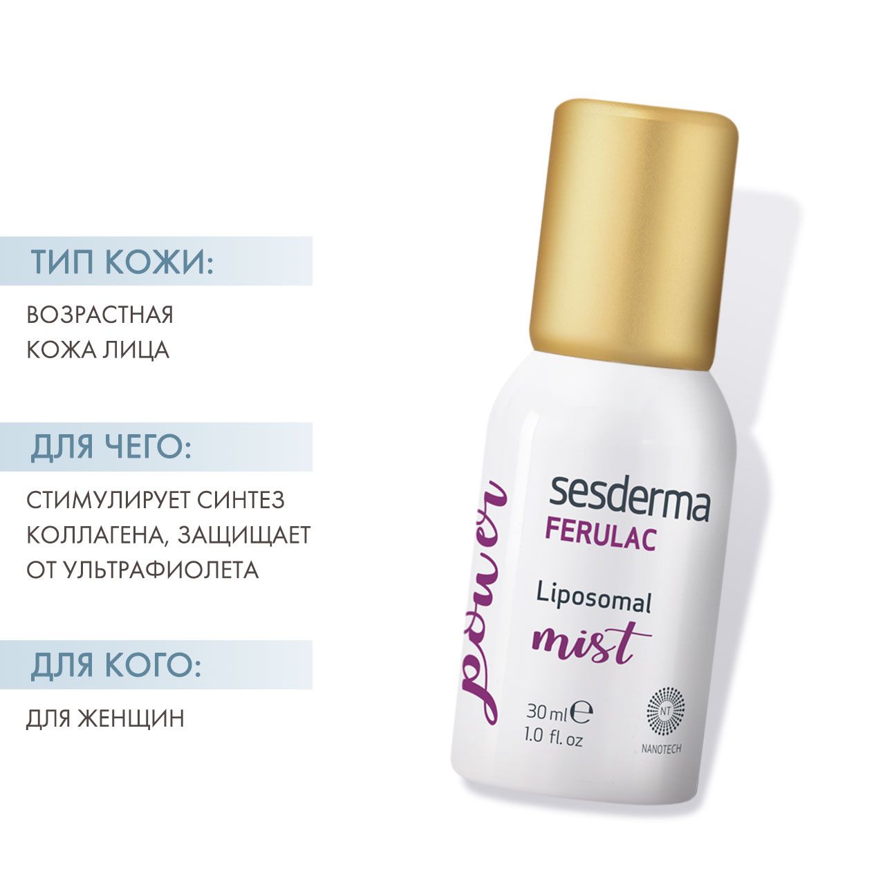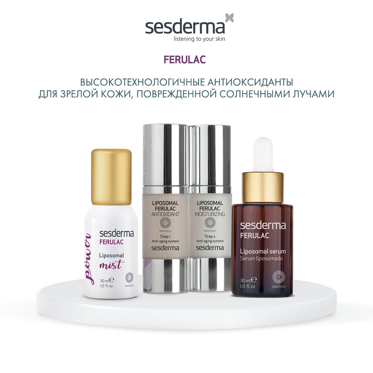 Sesderma Ferulac липосомальный мист для лица фотостарения подходит для всех типов кожи.