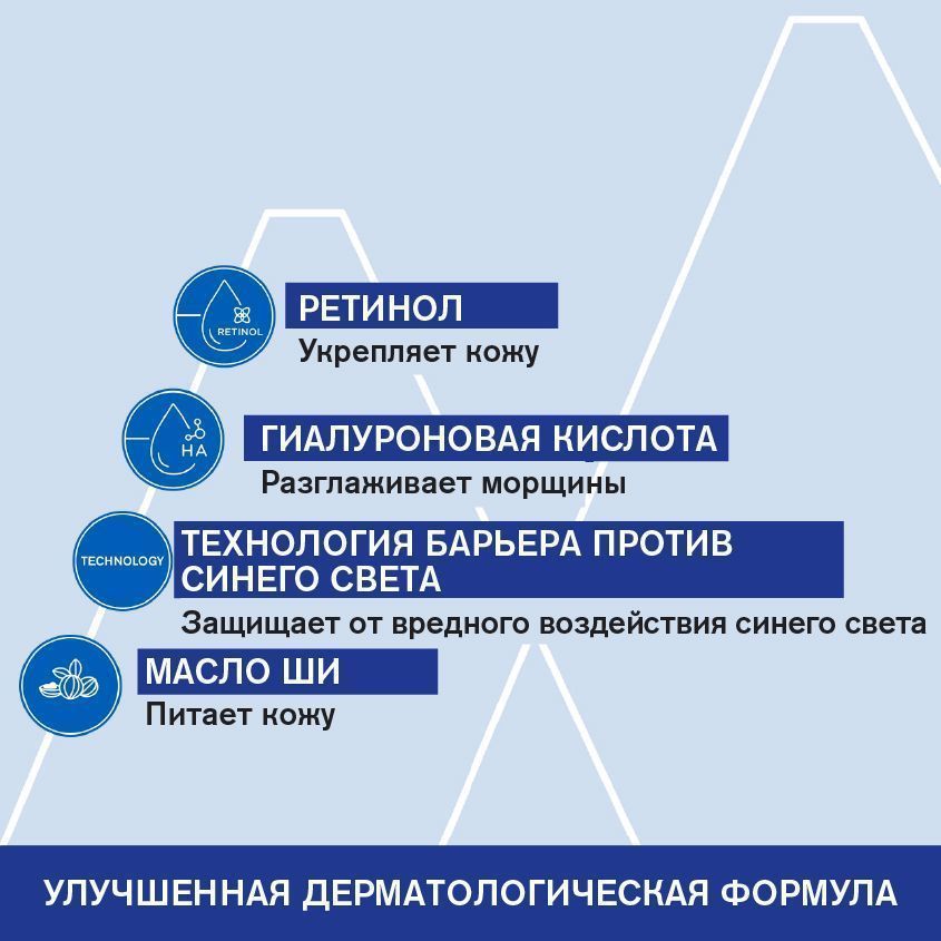 Активы: ретинол, гиалуроновая кислота, масло ши