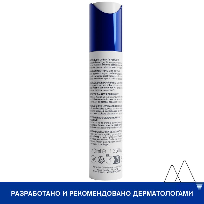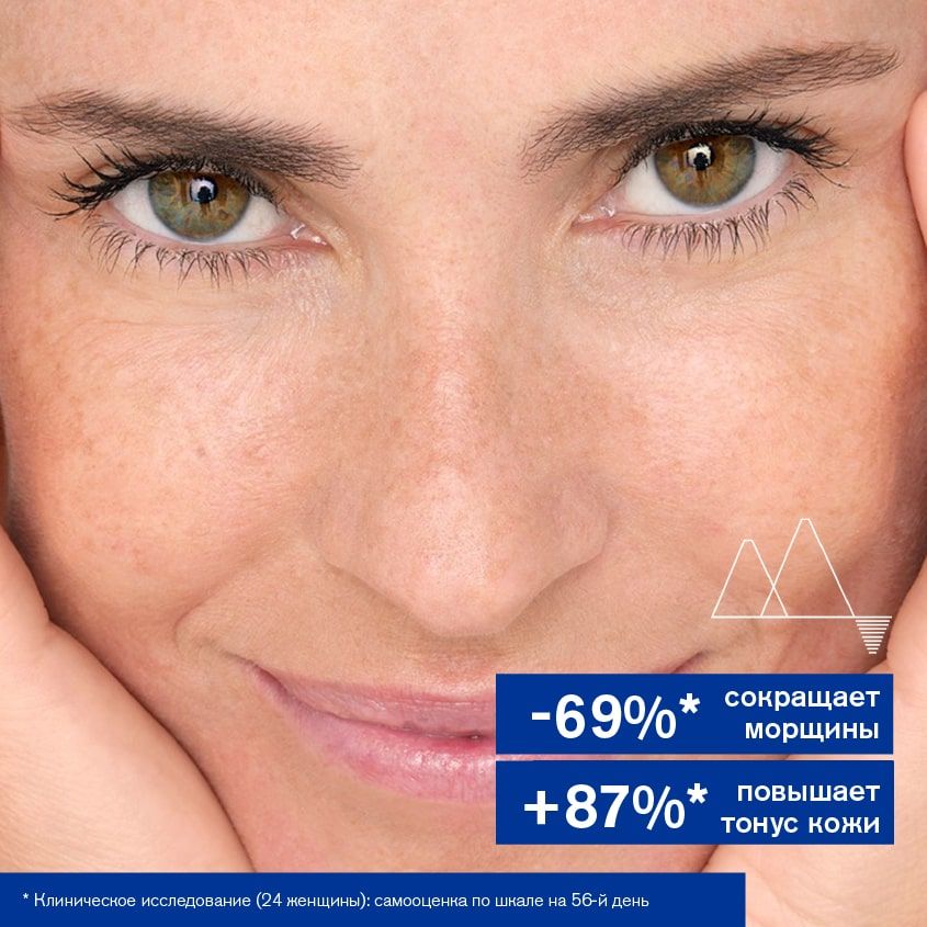 Дневной разглаживающий укрепляющий крем заметно разглаживает морщины (-69%), делает кожу более гладкой, черты лица расслабленными, овал лица более чётким. Повышает упругость кожи (+87%). Кожа становится более увлажненной (+57% в течение 6 часов) и сияющей.