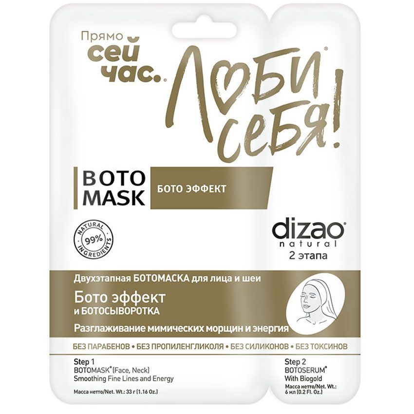 Бото-маска серии DIZAO – это революция в области косметологии! Теперь у Вас есть возможность эффективно разгладить морщины, не прибегая к врачебному вмешательству. Инновационный пептидный комплекс воздействует на нервно-мышечном уровне, поэтому мимические морщины не получают сигнала к сокращению и расслабляются. В итоге морщины разглаживаются, кожа обновляется, а мимика при этом сохраняется. Способствует синтезу коллагена и эластина, предотвращает появление новых морщин. Второй этап маски обогащен активными веществами, которые глубоко увлажняют, питают, придают коже сияние и жизненную силу. Уже после первого применения вы почувствуете, как ваша кожа станет более гладкой, свежей, здоровой и молодой.