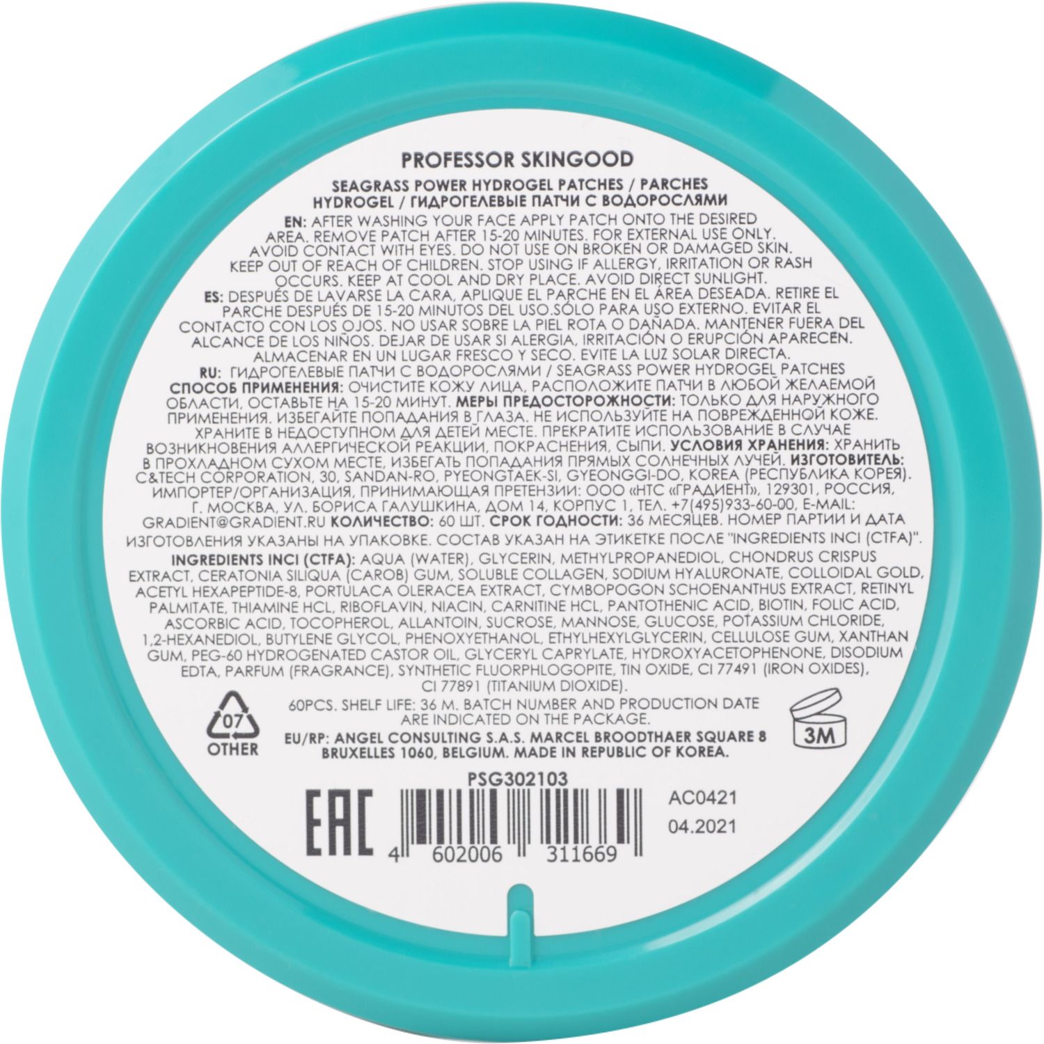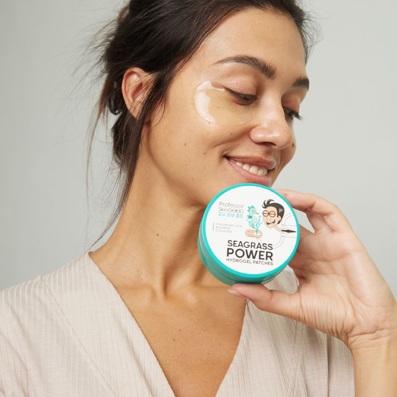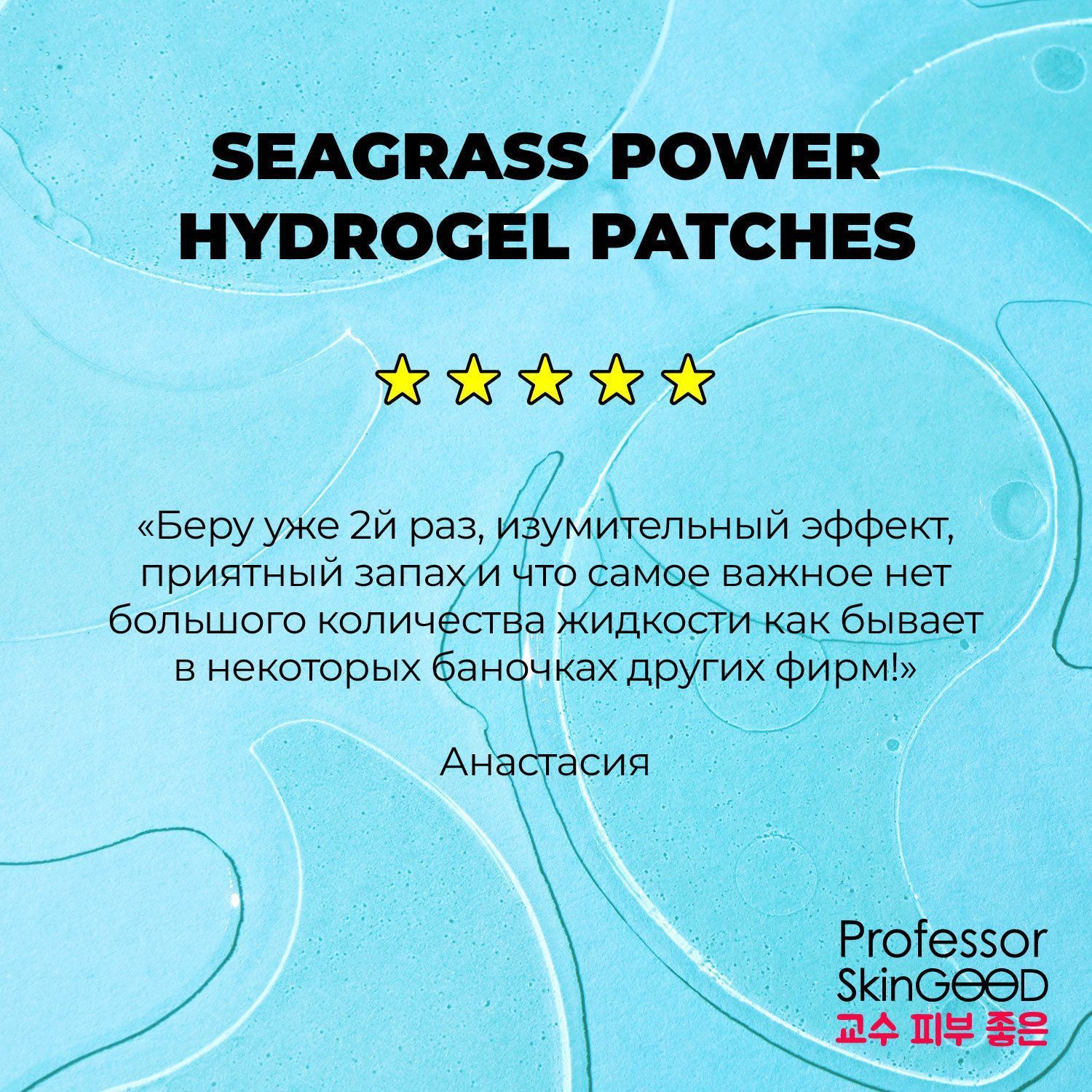 Патчи под глаза в банке Seagrass Power Hydrogel Patches от Professor SkinGOOD (Профессор Скингуд) состоят из инновационного материала гидрогеля, который благодаря своей плотной текстуре и высокой контактности с кожей создает эффект вакуума, усиливая действие всех компонентов, а также компрессионный эффект, уменьшая отеки, мешки и темные круги под глазами.
