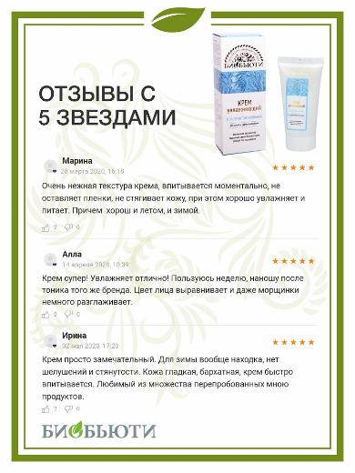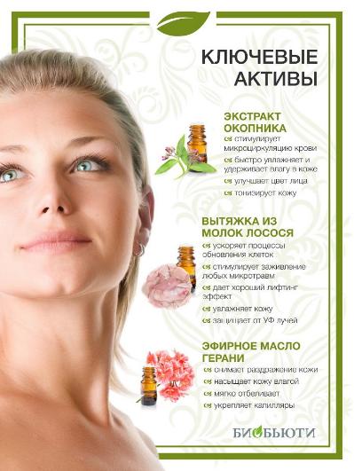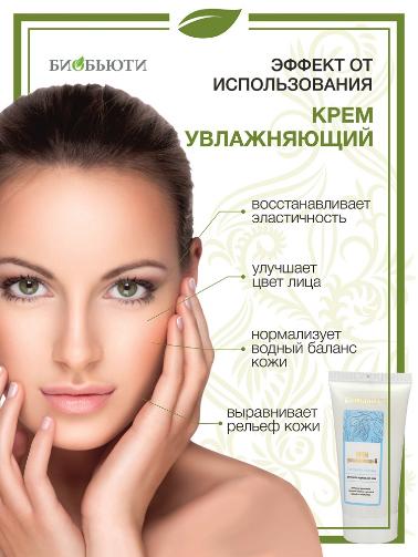 С помощью крема Биобьюти «Увлажняющий» нормализуется водный баланс, благодаря чему кожа выравнивается, ее цвет улучшается, разглаживаются морщинки. Кожа начинает сиять, она выглядит здоровой и красивой. Крем способен увлажнить даже самую сухую кожу, сделать ее мягкой и эластичной. Крем для лица Биобьюти «Увлажняющий» – это дневной крем, который подходит для ежедневного ухода за женской и мужской кожей. Средство также может использоваться в качестве ночного крема, оно оказывает положительное воздействие на кожу лица в любое время суток.