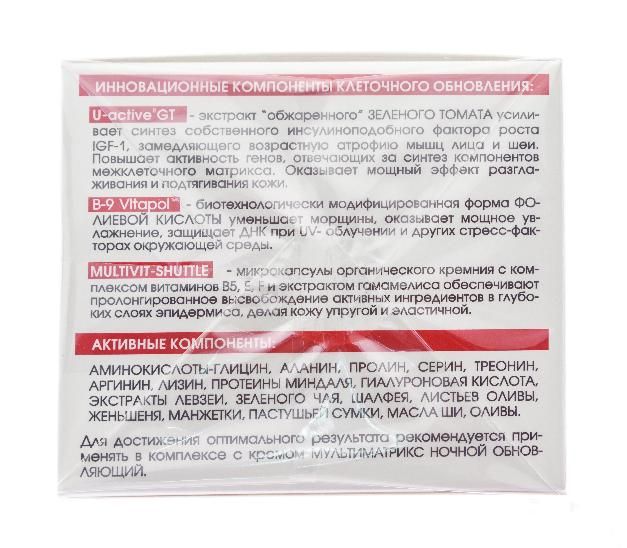 Для достижения оптимального результата рекомендуется применять в комплексе с кремом Мультиматрикс дневной обновляющий.