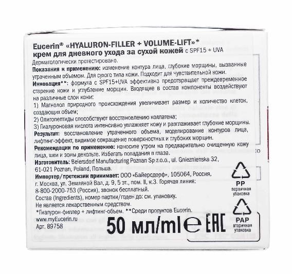 Со временем кожа теряет объем и упругость, контуры лица становятся менее четкими, а черты лица заметно меняются. Крем для дневного ухода за сухой кожей Eucerin HYALURON-FILLER + VOLUME-LIFT разработан специально для разглаживания глубоких морщин, восстановления контуров лица, оказания лифтинг-эффекта и защиты сухой кожи от солнечных лучей.