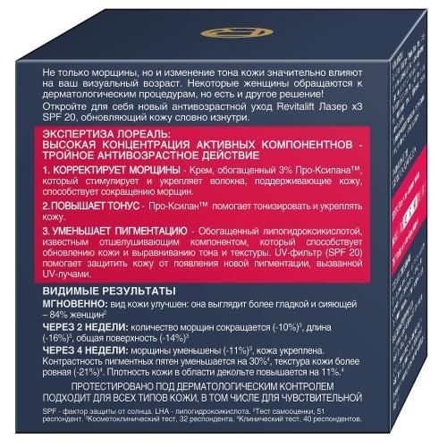 Лаборатории Л’Ореаль Париж создают 1-й антивозрастной уход*, который бросает вызов лазерной процедуре. Благодаря мощным компонентам Revitalift Лазер Х3 оказывает тройное действие: разглаживает морщины, повышает упругость кожи и ремоделирует контуры. В состав революционной формулы Revitalift Лазер Х3 входят гиалуроновая кислота и 3% Про-Ксилан, глубоко проникающие в кожу и стимулирующие ее обновление.