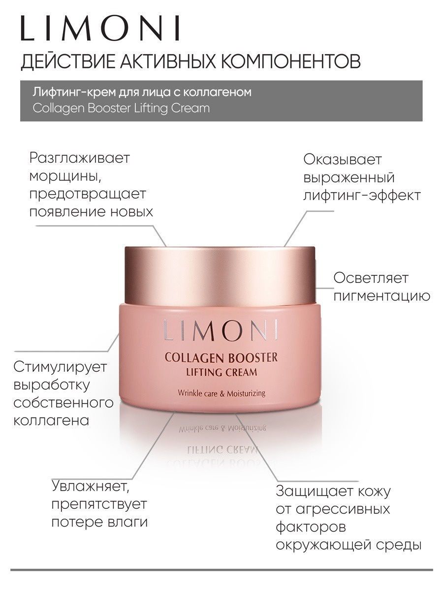 Collagen Booster Lifting Cream содержит до 75% морского коллагена и оказывает выраженный эффект лифтинга, увлажняет, разглаживает морщины, восстанавливает эластичность кожи, улучшает собственный синтез коллагена и эластина в коже, возвращает коже тонус и молодой вид.