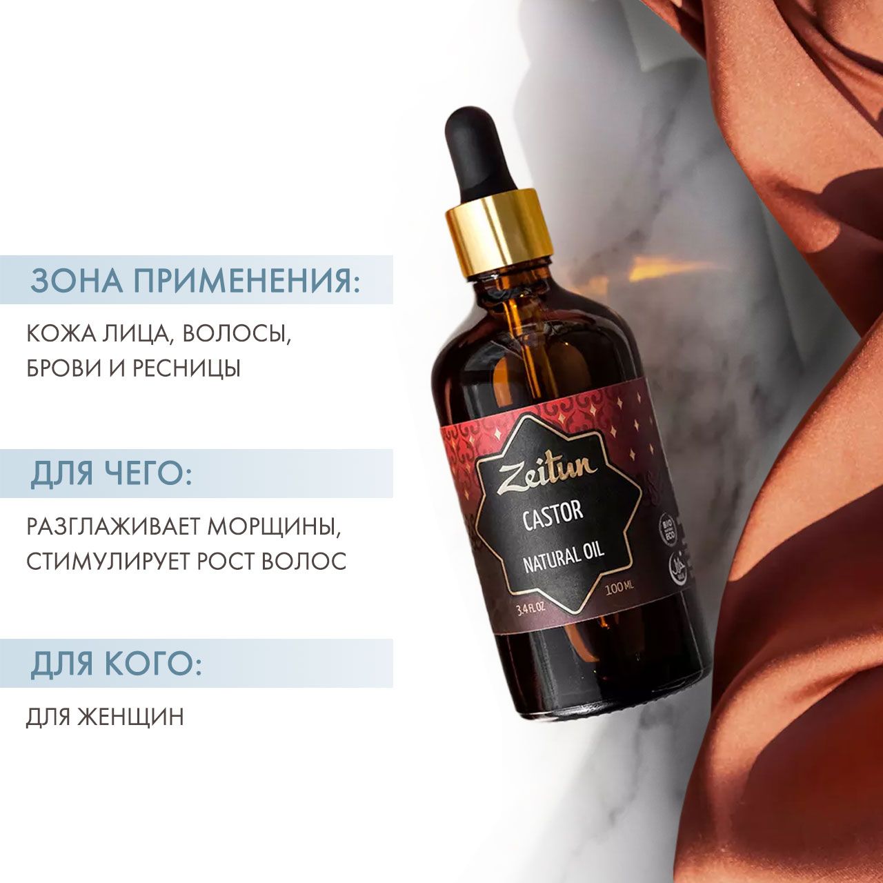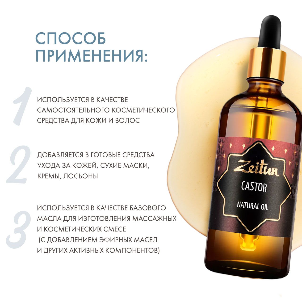 Добываемое из клещевины касторовое масло обладает гораздо более широким спектром действий, чем можно было предположить: например, оно применяется при снижении эластичности кожи, разглаживает морщины, прекрасно заживляет и даже помогает избавиться от воспалений. Среди давно известных преимуществ касторового масла – его укрепляющее и стимулирующее рост воздействие на волосяные луковицы, в том числе ресничные. В ряду доступных натуральных средств, оно, пожалуй, является самым популярным для поддержания здоровья и густоты волос. Касторовое масло Zeitun является 100% чистым, натуральным, неразбавленным продуктом.