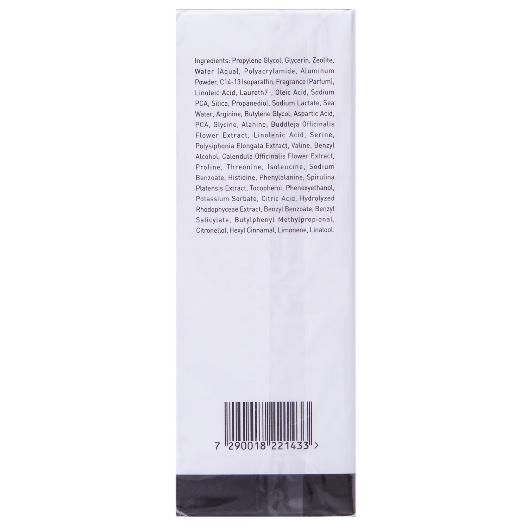 Состав: платина, комплекс из мононасыщенных жирных кислот и омега-6 ненасыщенных кислот, аспарагиновая кислота, аргинин, валин, пролин, треонин, изолицин, экстракты календулы и кустарника будлея, глубоководная морская вода, пропилен гликоль, глицерин