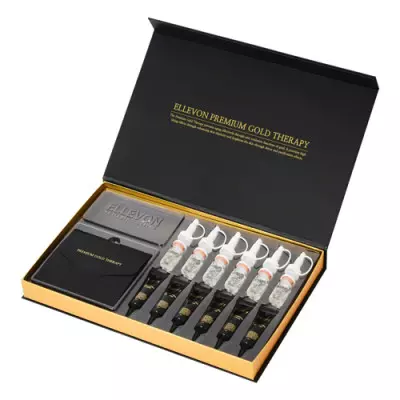 Набор «Премиум золотая терапия» с системой ионного обмена - антивозрастная программа, которая доставляет питательные компоненты глубоко в кожу и при этом выводит токсины. При проведении золотой терапии ионы золота обмениваются с ионами кожи и, таким образом, активизируют функции клеток и стимулируют кровообращение, способствуя регенерации.