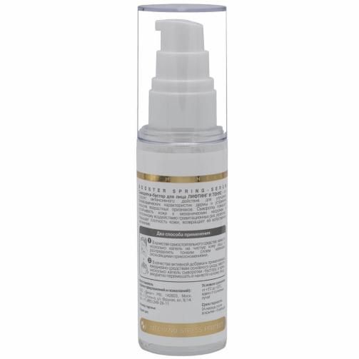 Сыворотка-бустер для лица "Лифтинг и тонус" – это продукт интенсивного действия для улучшения биомеханических характеристик дермы и устранения внешних возрастных признаков. Сыворотка повышает устойчивость кожи к механическим нагрузкам и постоянному воздействию гравитационных сил, укрепляет, повышает плотность кожи, возвращает ей естественное натяжение.