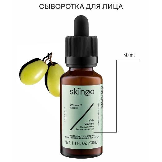 Сыворотка для лица Radiance Face Serum с коллагеном и эластином мгновенно выравнивает тон, освежает внешний вид и придает коже естественное сияние и гладкость. Высокая концентрация anti-age компонентов – коллагена и эластина – укрепляет каркас лица, предотвращает потерю упругости и эластичности кожи. Масло виноградной косточки разглаживает мимические морщины, борется с преждевременным увяданием клеток, интенсивно насыщая их кислородом. Легкая бархатистая текстура средства приятно ложится на кожу, не оставляет ощущения липкости и может использоваться как база под макияж.