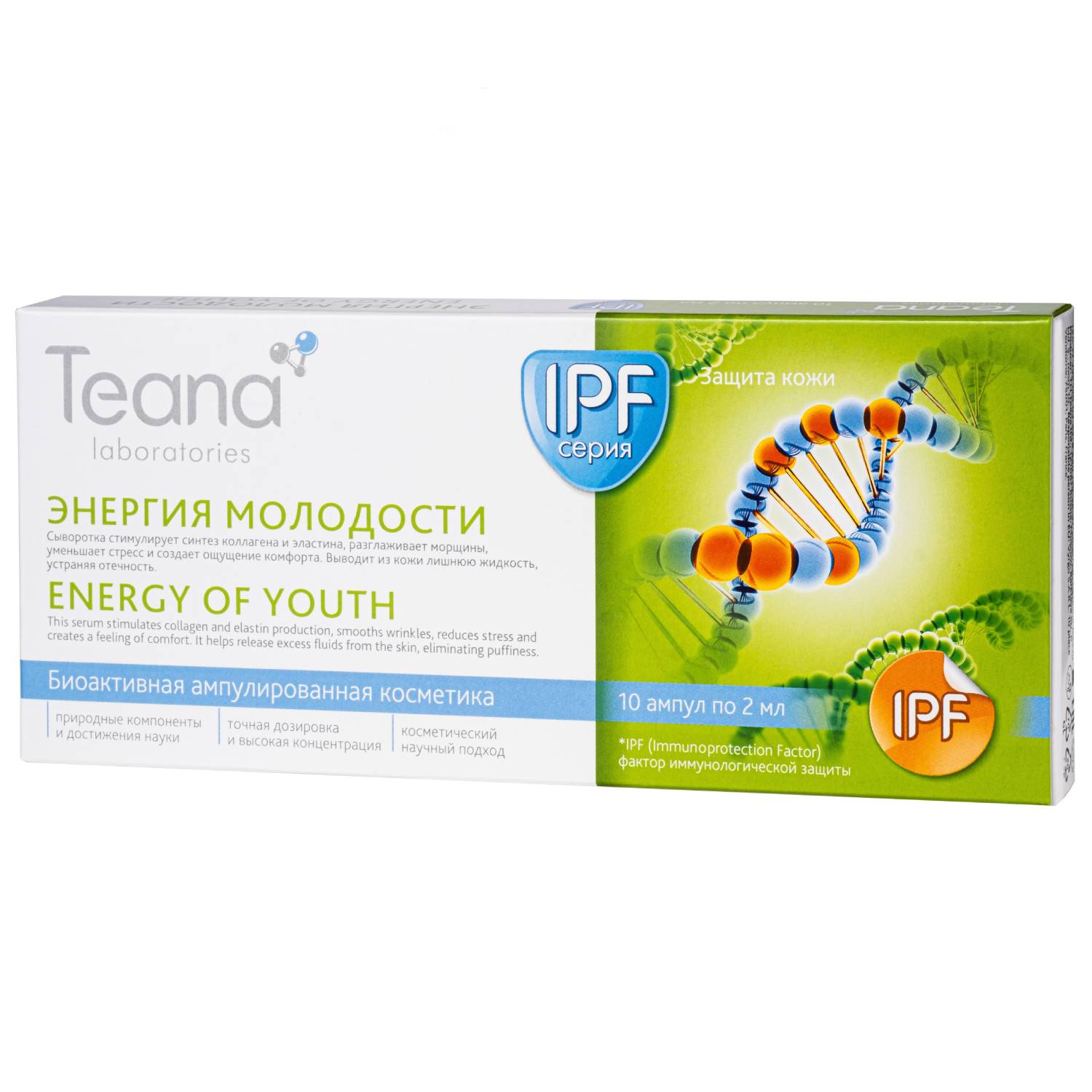 Восстанавливает упругость кожи, насыщая клетки энергией и силой. Запускает естественные механизмы восстановления и защиты от негативных факторов окружающей среды. Эластичная, упругая, свежая и молодая кожа – результат действия инновационной формулы концентрированного препарата.