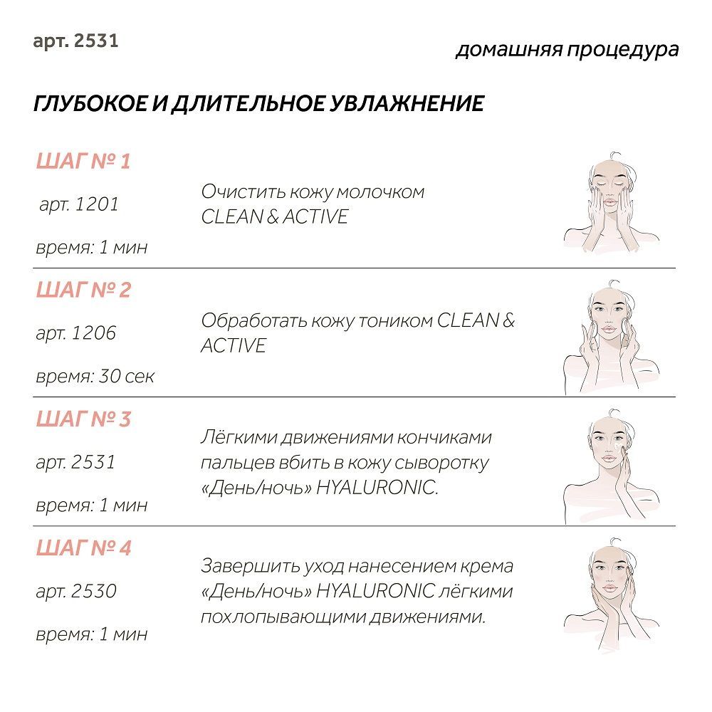 Наносите на очищенную, слегка увлажненную после тоника кожу легкими движениями. Не массировать. Необходимая и достаточная разовая доза средства – одно нажатие дозатора.