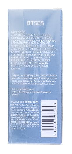 Состав: aqua, propylene glycol, lecithin, retinol, sodium phosphate, fucose, alcohol, triethanolamine, carbomer, polysorbate 20, sodium cholate, serine, sodium chloride, glucuronic acid, hydrolyzed hibiscus esculentus extract, dextrin, pentapeptide-5, bht, acetyl glutammyl heptapeptide-1, bha, caprylyl glycol, arginine, tocopherol, acetyl hexapeptide-30, phenoxyethanol, ethylparaben, methylparaben, propylparaben, butylparaben, parfum