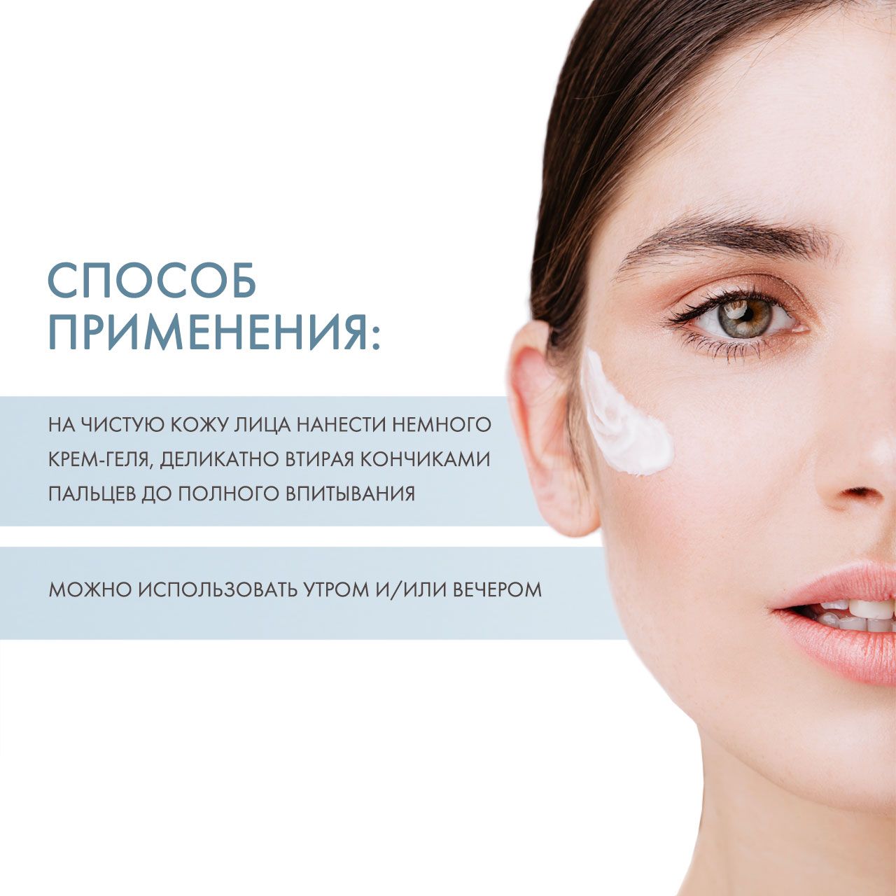 На чистую кожу лица нанести немного крем-геля, деликатно втирая кончиками пальцев до полного впитывания.