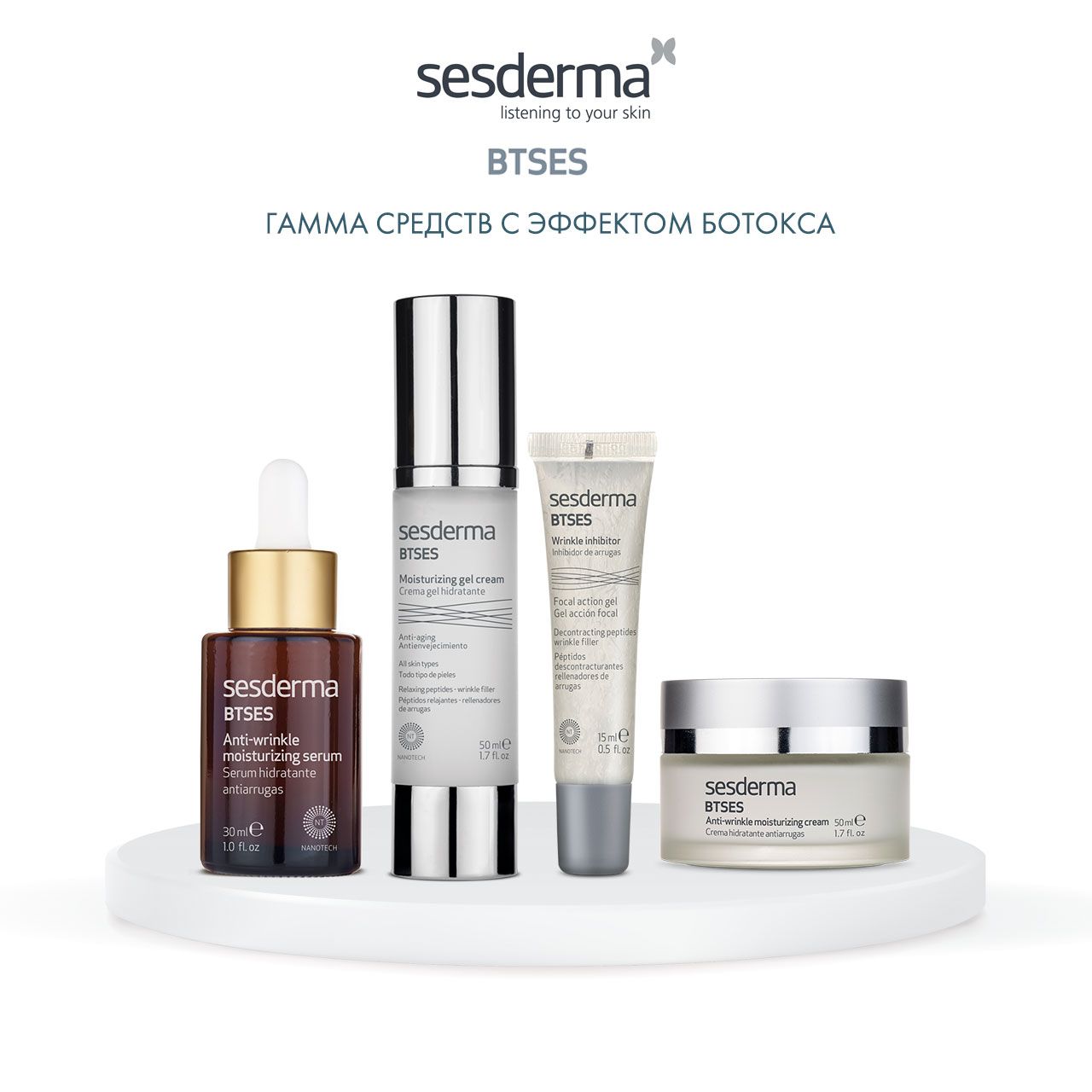 Состав: aqua, polysorbate 60, cetyl alcohol, caprylic/capric triglyceride, octyldodecanol, glycerin, sorbitan monostearate, myristyl myristate, c12-15 alkyl benzoate, cyclomethicone, rosa rubiginosa seed oil, palmitoyl tripeptide-5, acetyl glutamyl heptapeptide-1, hydrolized hibiscus esculentus extract, lecitin, cyclohexasiloxane, dextrin, alcohol denat, carbomer, triethanolamine, tocopheryl acetate, sodium chloride, sodium cholate, disodium edta, linalool, lodopropynyl butylcarbamate, phenoxyethanol, methylparaben, ethylparaben, propylparaben, butylparaben, hydroxycitronellal, geraniol, citronellol, parfum.
