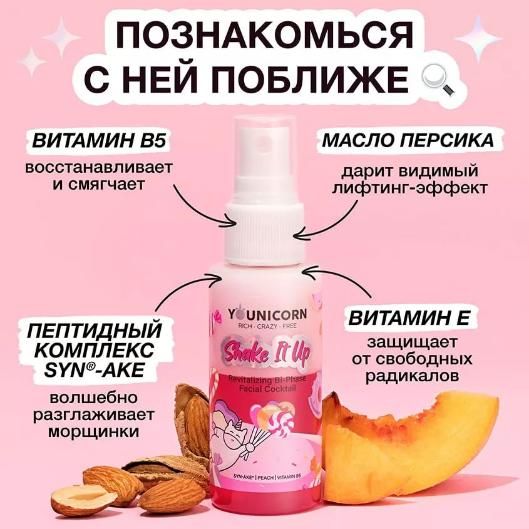 Восстанавливающий и омолаживающий коктейль разработан для интенсивного питания и замедления возрастных изменений кожи. Двухфазная формула на основе ценных масел, витаминов и пептидного комплекса обеспечивает лифтинг-эффект, тонизирует, возвращает коже естественную упругость и эластичность.