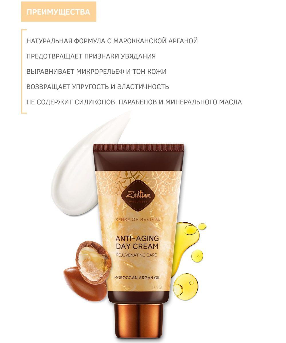 Продлите молодость кожи с дневным антивозрастным кремом для лица "Ритуал восстановления". Благодаря натуральной омолаживающей формуле на основе марокканской арганы крем эффективно препятствует появлению признаков старения и устраняет их, разглаживает морщины, нейтрализует свободные радикалы и последствия дневного стресса. Кожа становится заметно более эластичной, контуры лица - более четкими и подтянутыми, активизируется клеточное обновление.