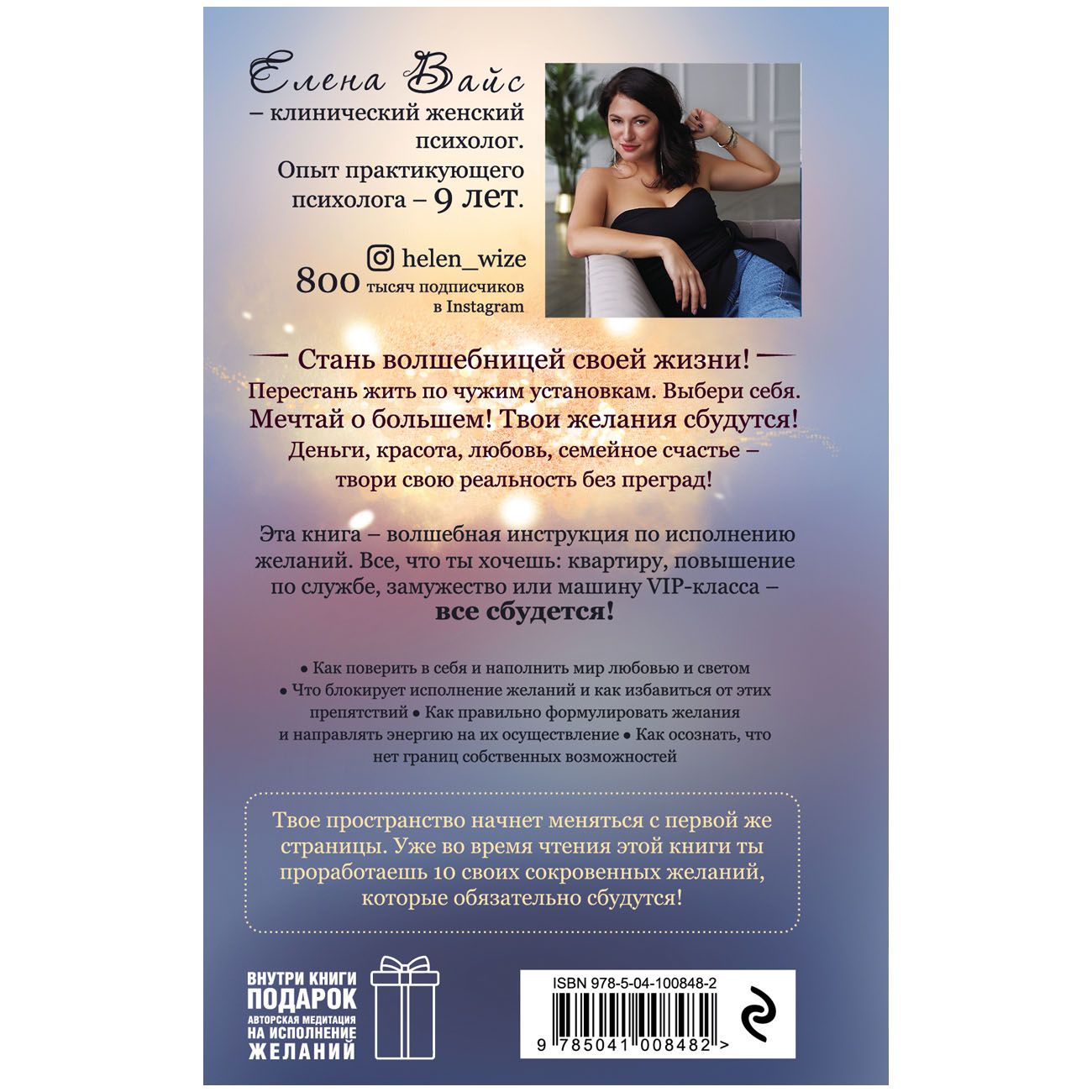 Что такое механизм исполнения желаний? Вся эта магия построена не на том, чтобы взмахом волшебной палочки или трусами на люстре «наколдовать» себе «Мерседес» или Прекрасного принца. Елена не научит вас пить кровь из кубка, резать лягушек или втыкать иголки, чтобы приворожить мужчину мечты. Все это не имеет отношения к магическому мышлению. Магическое мышление — это способность быстро материализовывать свою мысль! Оно заключается в умении правильно формулировать мысль, отправлять ее во Вселенную и правильно вкладывать энергию для реализации этой мысли. Ведь вы — частичка Бога. И вы можете формировать свою реальность!