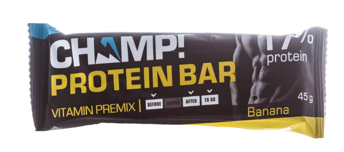 Вы активны и стараетесь придерживаться правильного питания? Ваш день расписан по часам, так что время от времени приходится пропускать основной прием пищи? Попробуйте протеиновый батончик «Банановый» – получите порцию белка и полезных веществ, а также удовольствие от яркого, насыщенного вкуса сочного банана! Полезно, вкусно, да еще и удобно – за счет своего компактного размера батончик помещается в любой сумке, его всегда можно взять с собой в дорогу и съесть, когда захотите. Занимайтесь спортом и будьте активны! Перекусывайте батончиками CHAMP!