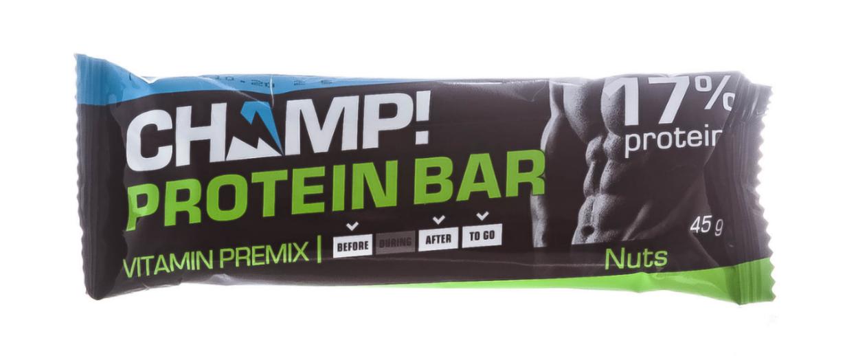 Вы занимаетесь фитнесом и придерживаетесь здорового образа жизни? После тяжелого дня силы на исходе и срочно нужно перекусить? Наш протеиновый батончик в таких случаях – оптимальное решение! Его дополнительный козырь – популярный ореховый вкус, который вам обязательно понравится. Батончик содержит необходимые организму белки, витамины, микро- и макроэлементы. Полезно, вкусно, да еще и удобно – за счет своего компактного размера батончик помещается в любой сумке, его всегда можно взять с собой в дорогу и съесть в любой момент. Занимайтесь спортом и будьте активны! Перекусывайте батончиками CHAMP!