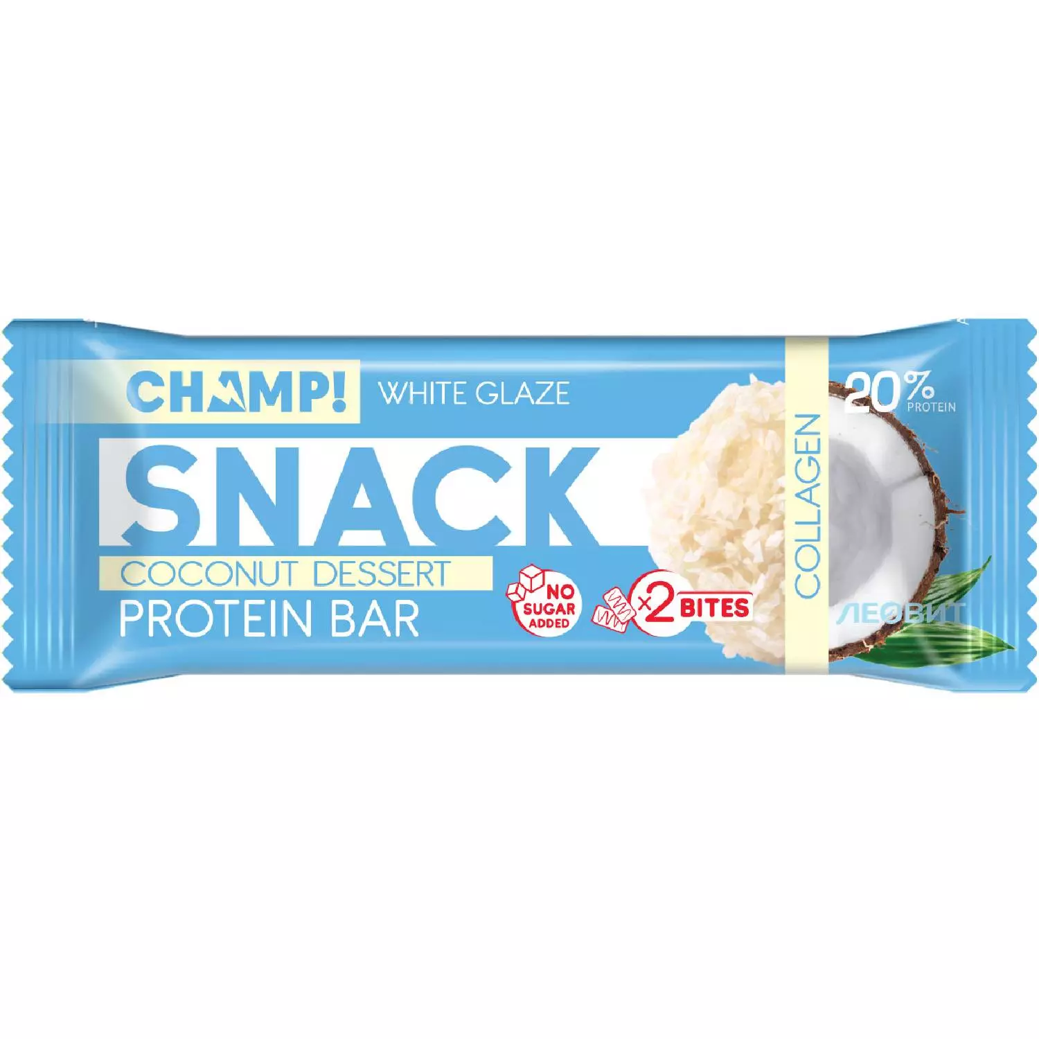Протеиновый батончик Champ! Snack "Кокосовый десерт" – это два кусочка наслаждения в белоснежной глазури. Он порадует вас насыщенным кокосовым вкусом, мягкой текстурой и натуральной кокосовой стружкой. Оптимальное сочетание молочного и растительного белков надолго обеспечивают насыщение и наполняют энергией для активного дня. Не содержит ГМО и сахар.