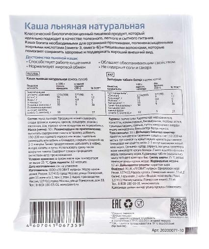 Льняная каша незаменима для тех, кто следит за своей фигурой и здоровьем. Содержит 30% пищевых волокон. Источник Омега-3 и Омега-6.